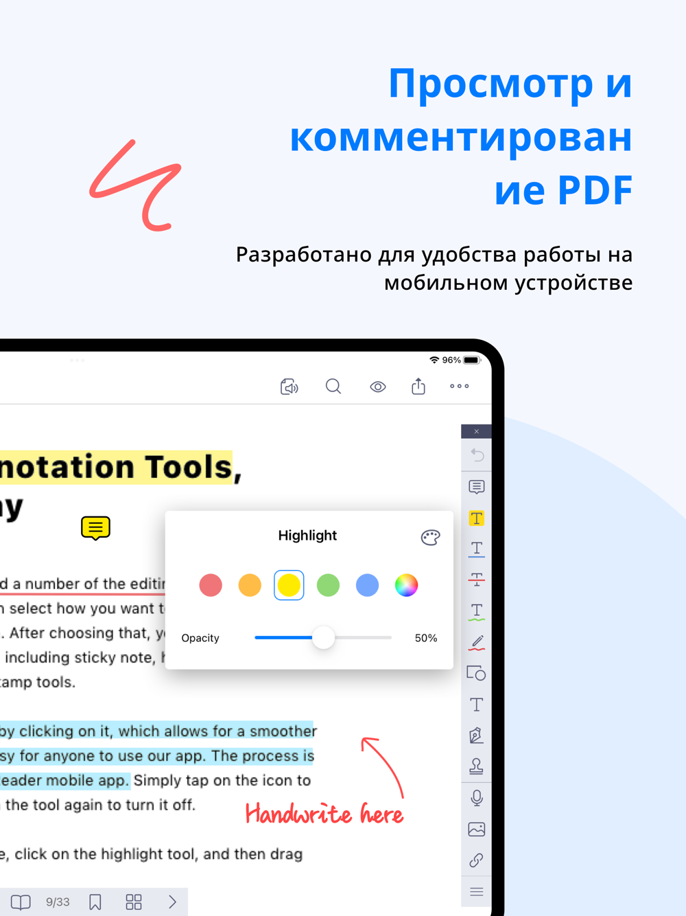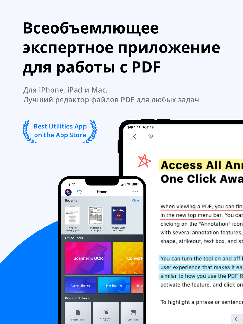 PDF Reader является мощным решением для работы с PDF на вашем iPhone, iPad и Mac. С PDF Reader любой пользователь или менеджер может воспользоваться PDF Reader, чтобы добавлять примечания, редактировать, объединять, преобразовывать, шифровать, сканировать и подписывать PDF-документы из любого места, будь то школа, работа, дом или дорога.