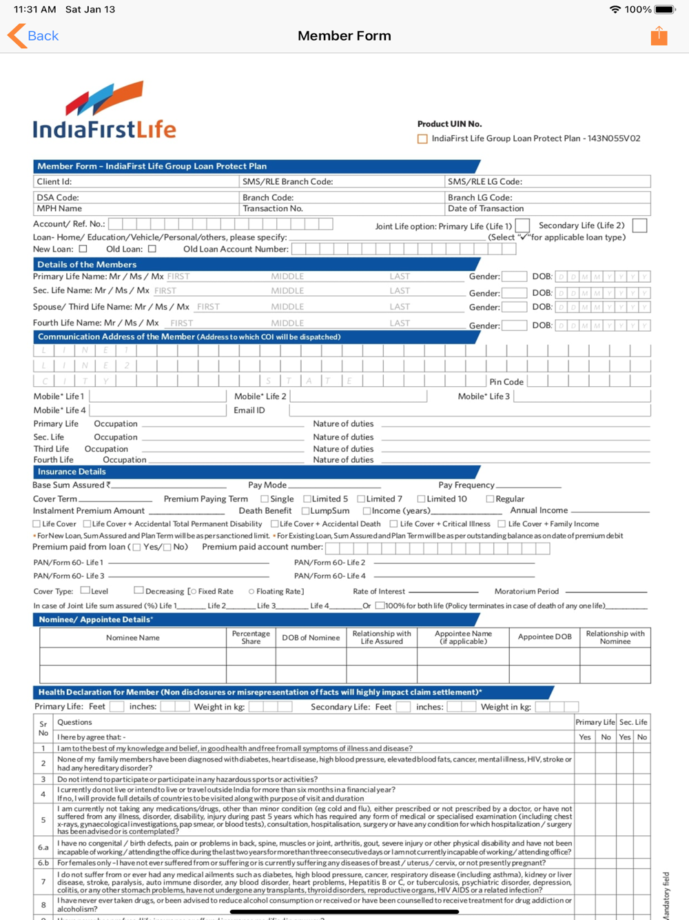 IndiaFirst Life GLP premium calculator app is your one stop source for calculating Group Loan Plan premium and generating quote in real-time for Home Loan, Education Loan, Vehicle Loan, & Personal Loan.
