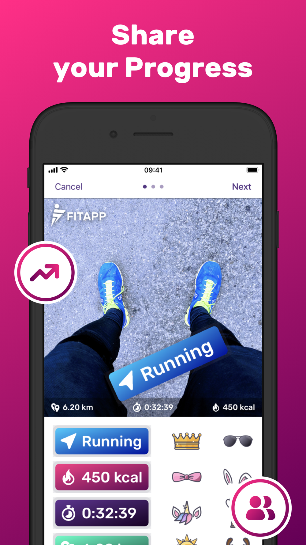 Track your distance, time, speed and calories burned with FITAPP. The running app uses GPS tracking to support you during all your sporting activities, be it running, jogging, cycling, inline skating, mountain biking, nordic walking, cross-country skiing, hiking, golfing, riding, walking the dog, long boarding, or whichever winter sport takes your fancy. FITAPP will also help you to lose weight, count your calories, maintain your target weight or simply to stay fit. Take a SNAP of your favorite route, your personal best or your favorite hike in the great outdoors. You can then post your sporting prowess on social media networks and embark on a journey with your friends into your fit futures together!