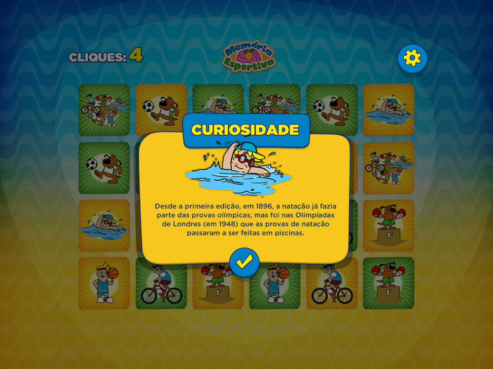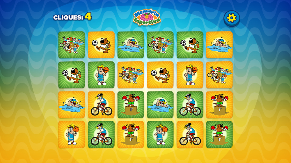 Jogo da memória digital, com ilustrações de personagens da Xalingo representando alguns esportes. O objetivo é encontrar os pares de cada ilustração. A cada dupla acertada, é apresentada uma curiosidade sobre o esporte em questão. A pontuação é contada de acordo com o número de cliques necessários para completar o jogo (quanto menos cliques, maior a pontuação). A cada recomeço de jogo, as cartas são embaralhadas de forma diferente, redistribuídas em outras posições, garantindo sempre um novo desafio. É um jogo que trabalha a capacidade de atenção, concentração e a memória visual da criança, além de oferecer informações sobre os esportes abordados.