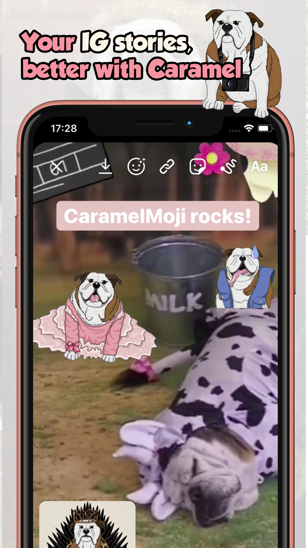CaramelMoji is the #1 Bulldog Emoji Dog App thanks to Caramel turned into a an adorable pet emoji.
