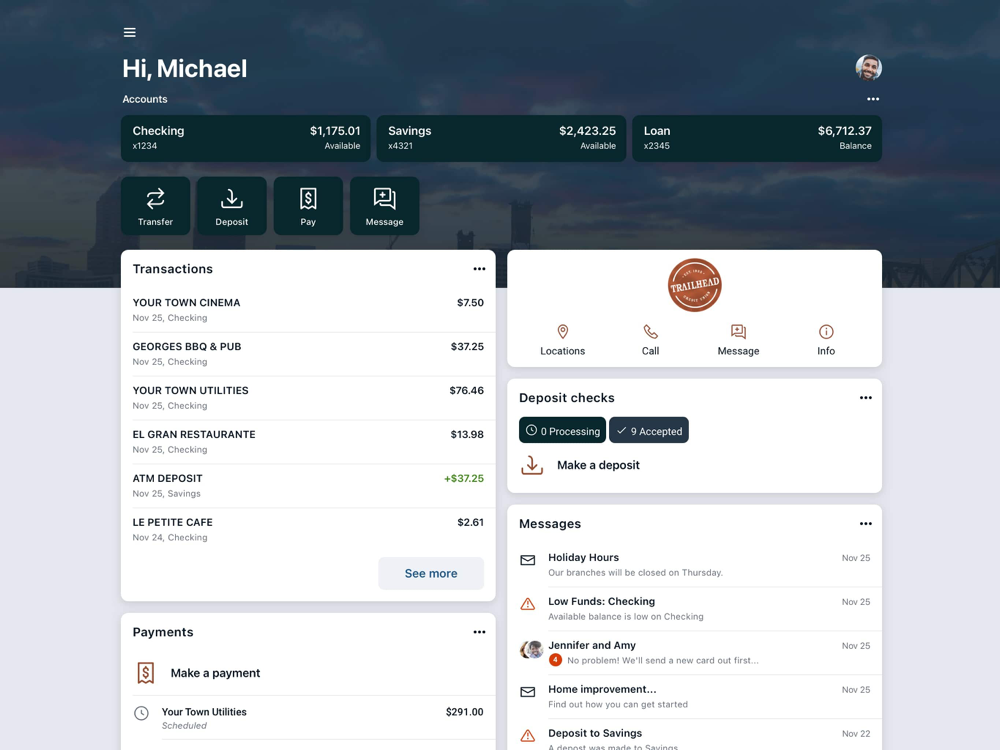 Trailhead Mobile Banking is your personal financial advocate. It’s fast, secure and makes life easier by empowering you with the tools you need to manage your finances.