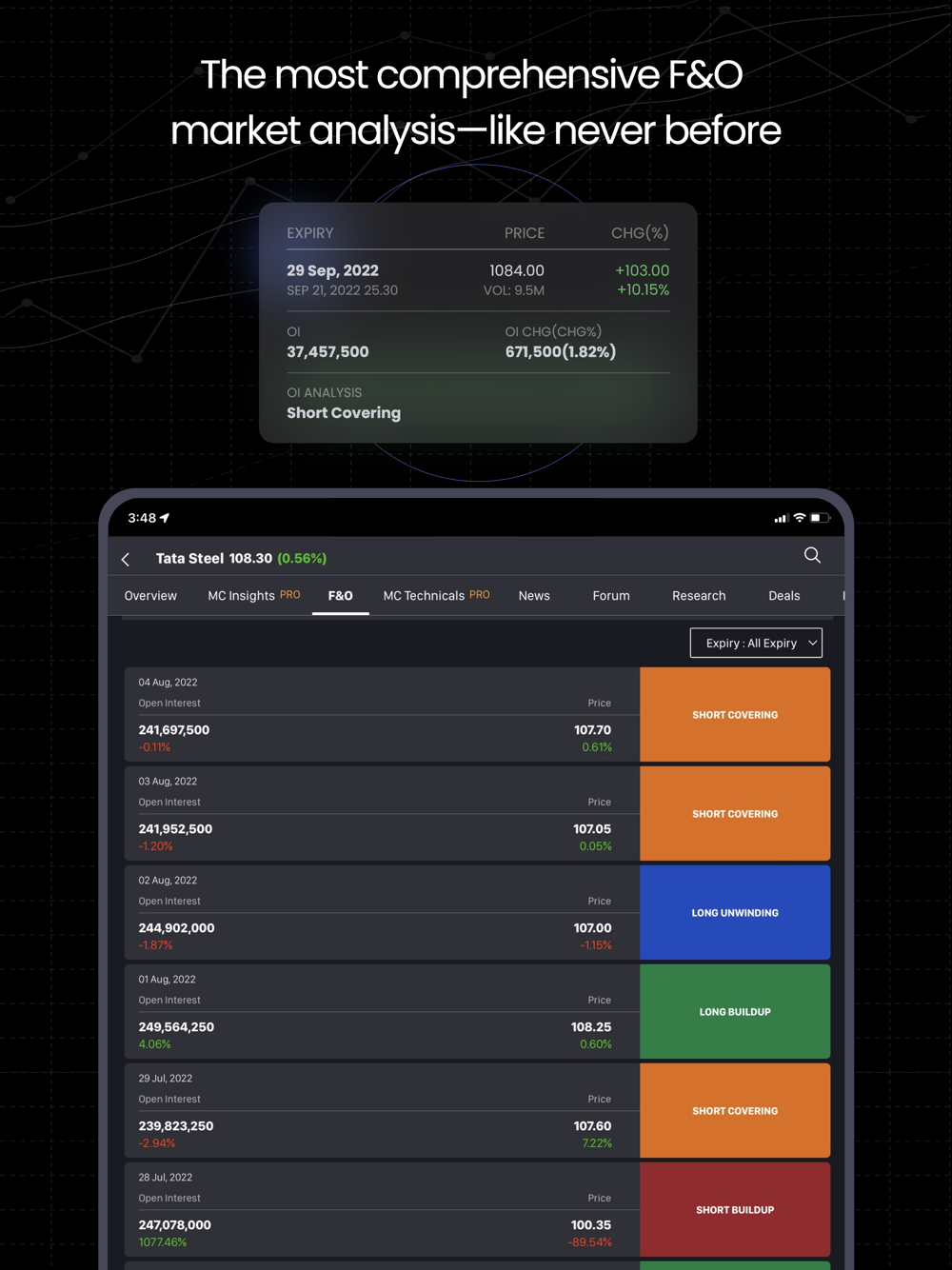 Track the latest updates on Indian and Global financial markets on your smartphone with the Moneycontrol App. It covers multiple assets from BSE, NSE, MCX and NCDEX exchanges, so you can track Indices (Sensex & Nifty), Stocks, Futures, Options, Mutual Funds, Commodities and Currencies with ease.