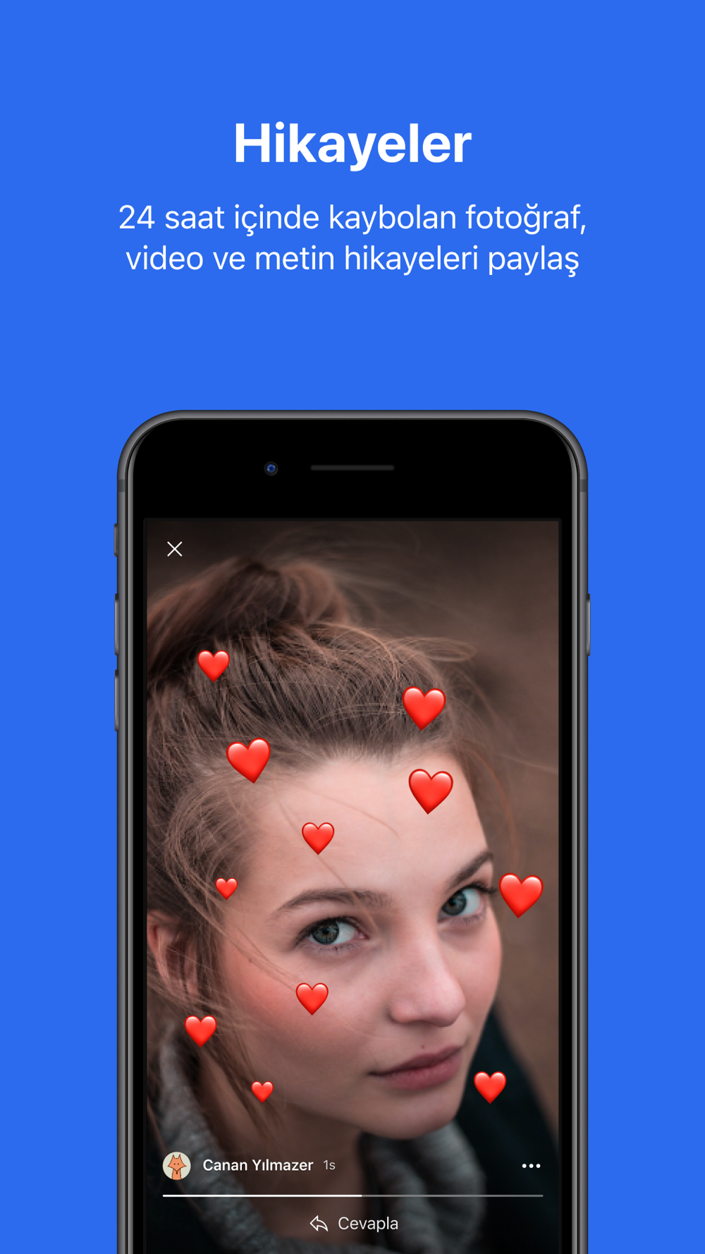 • 24 saat sonra kaybolan resim, metin ve video Hikayeleri paylaş. Gizlilik ayarları, her bir Hikayeyi tam olarak kimlerin görebileceğini kontrol etmeni sağlar.