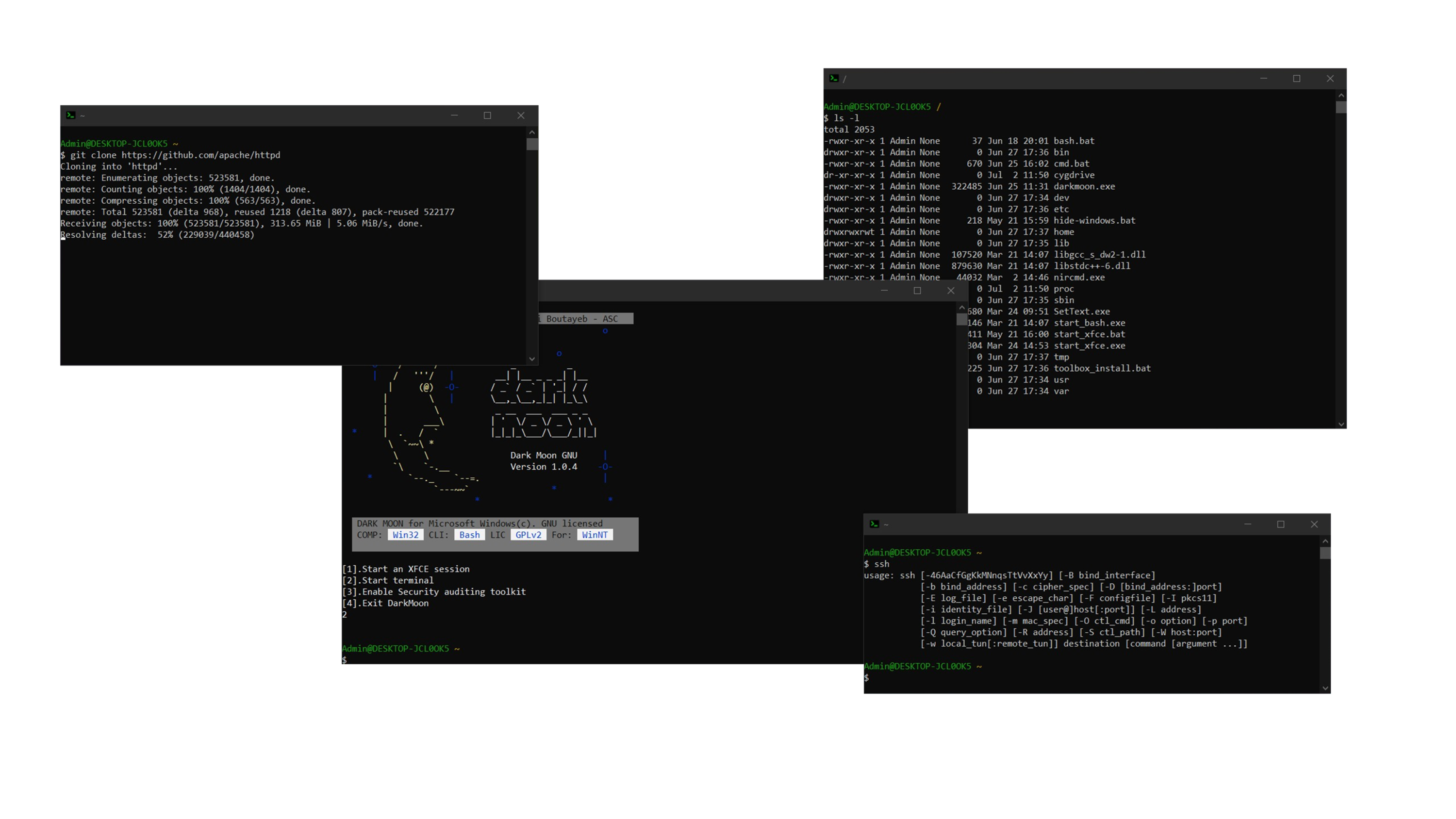 Dark Moon Cybersecurity is a GNU/Cygwin distribution dedicated to advanced security audits and security auditing with WSL’s independent Windows Linux tools.