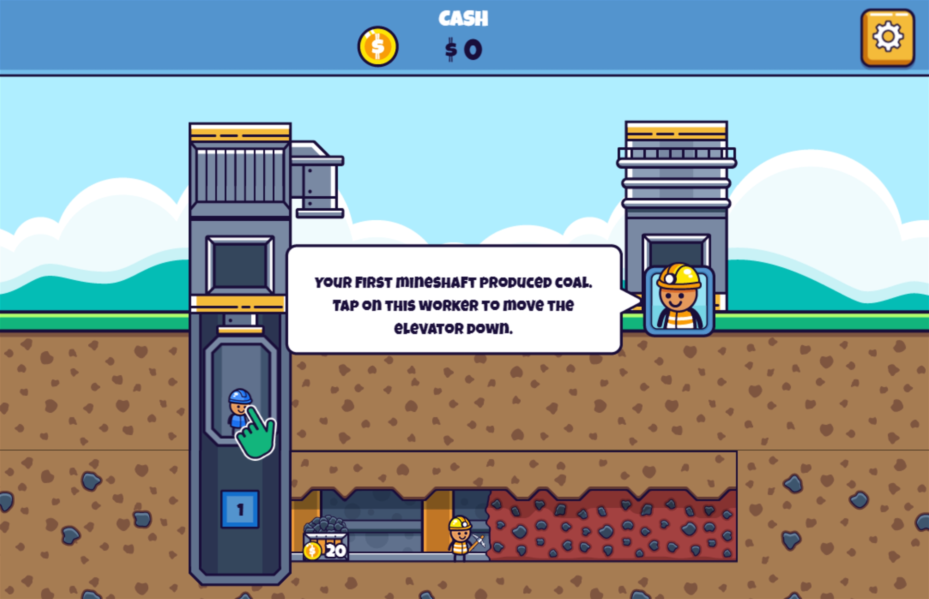 Tap on your miners to start digging. Next, transport ore to ground level with an elevator. Finally, transport the ore to your warehouse to earn a profit.