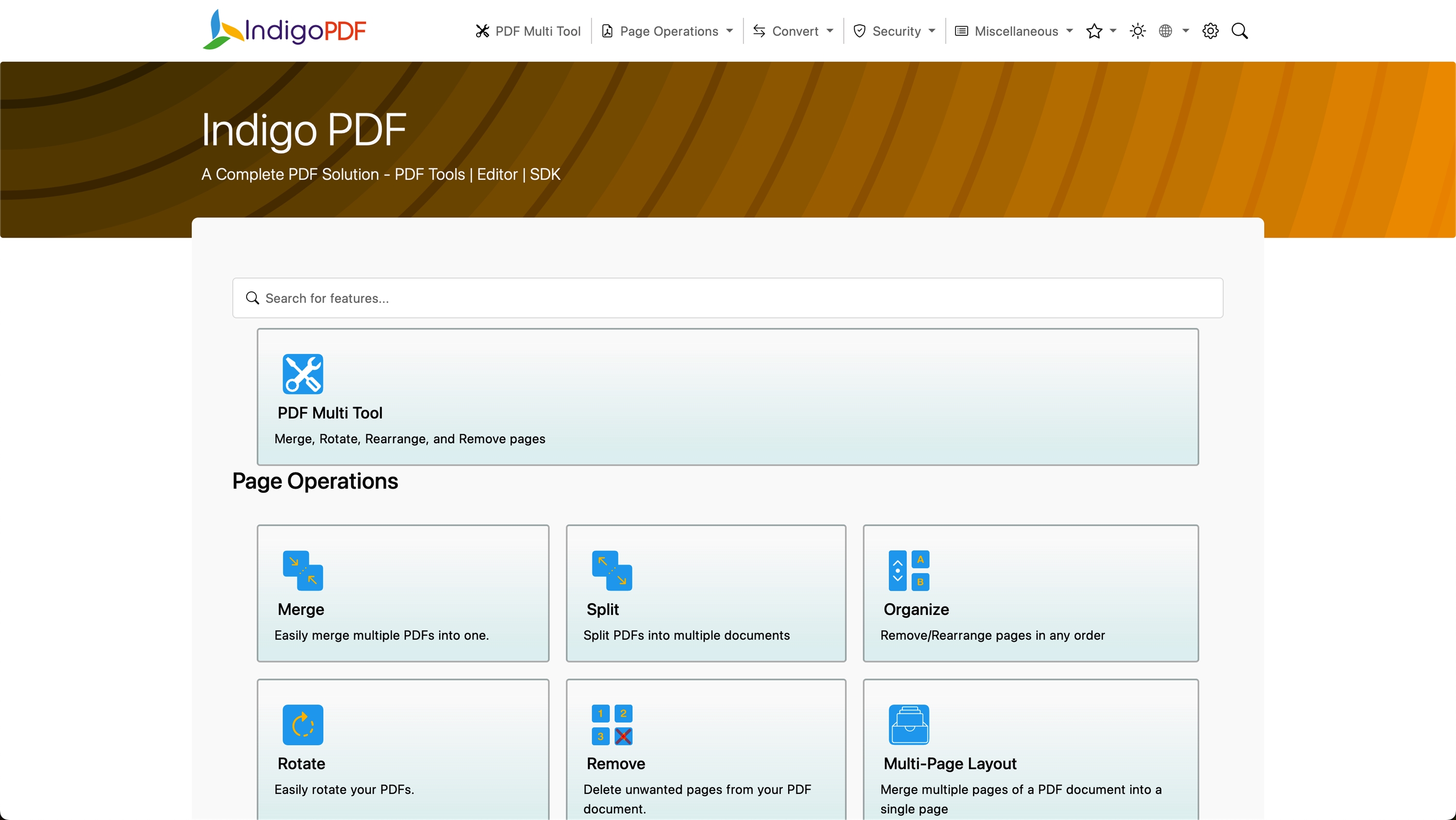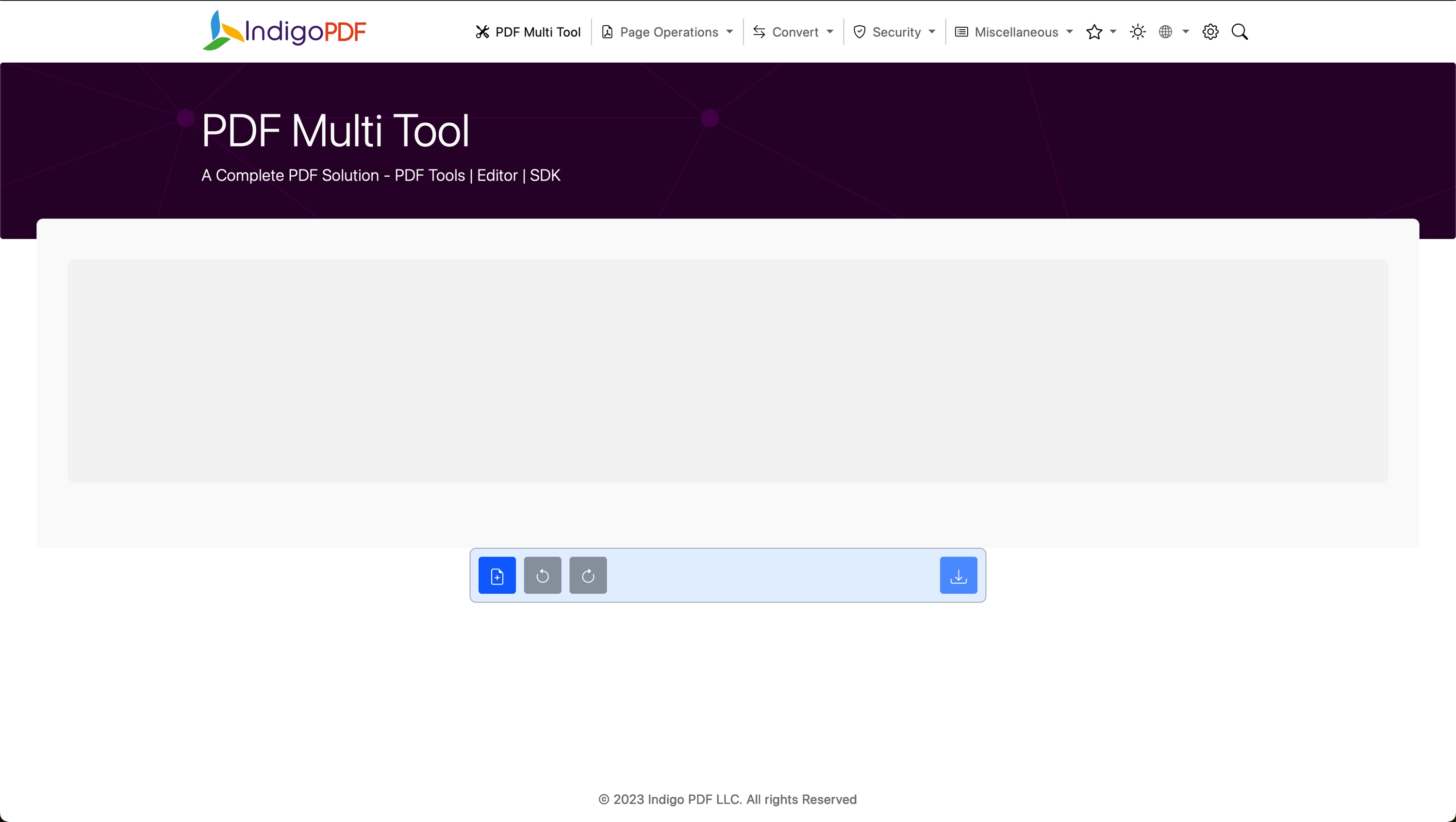Indigo PDF offers robust features for handling your PDF files. You can effortlessly combine, divide, or transform your PDF documents. We prioritize the security of your files. Indigo PDF never retains your files, monitors your activity, or collects any data. It operates entirely on your own computer, guaranteeing your privacy and giving you complete control over your data. Indigo PDF is built with the user in mind. You have the flexibility to customise the interface, application name, and description to tailor the settings to your specific preferences and requirements.