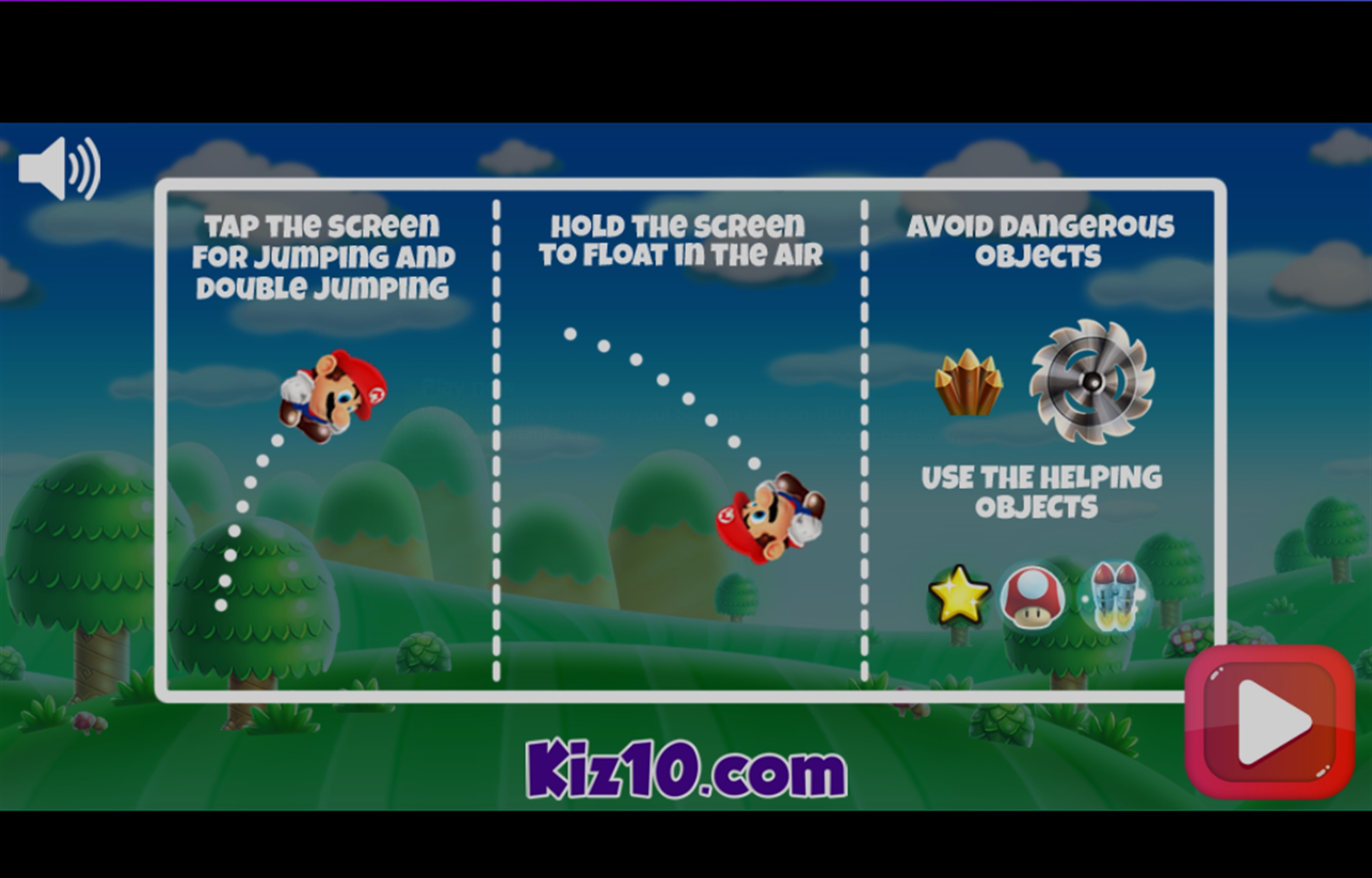 Run with Mario and friends and help to rescue the princess, tap the screen to jump and make some tricks movements, Rush all the worlds and stomp the enemies to kill them, collect coins and buy Mario friend mask in the shop, be carefull with the spikes and saws, Run Fasters As possible and Help Mario to reach the best scores,