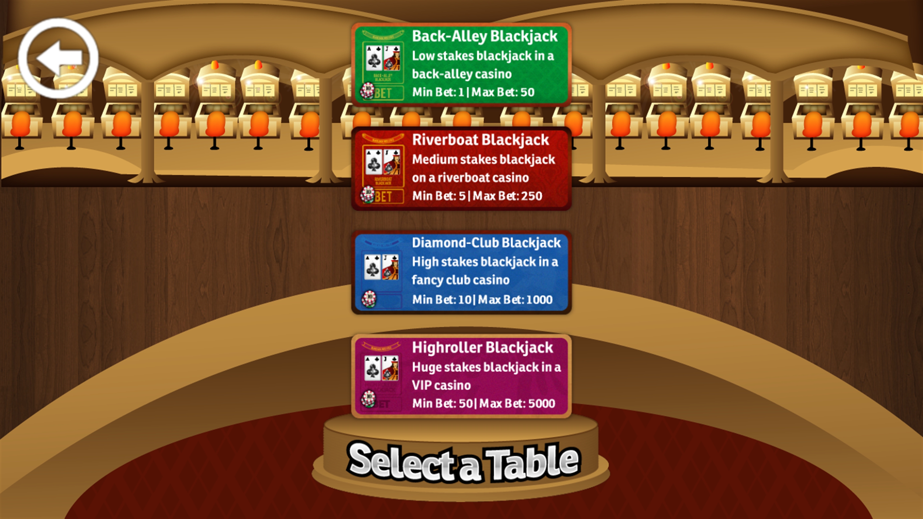 Have fun with 3rd Floor Blackjack, free for your Windows 8 devices. Enjoy 4 unique tables, each with their own themes and side bets. Earn win tokens to unlock new side bet payouts and tables. Collect all of the achievements and improve your blackjack skills!