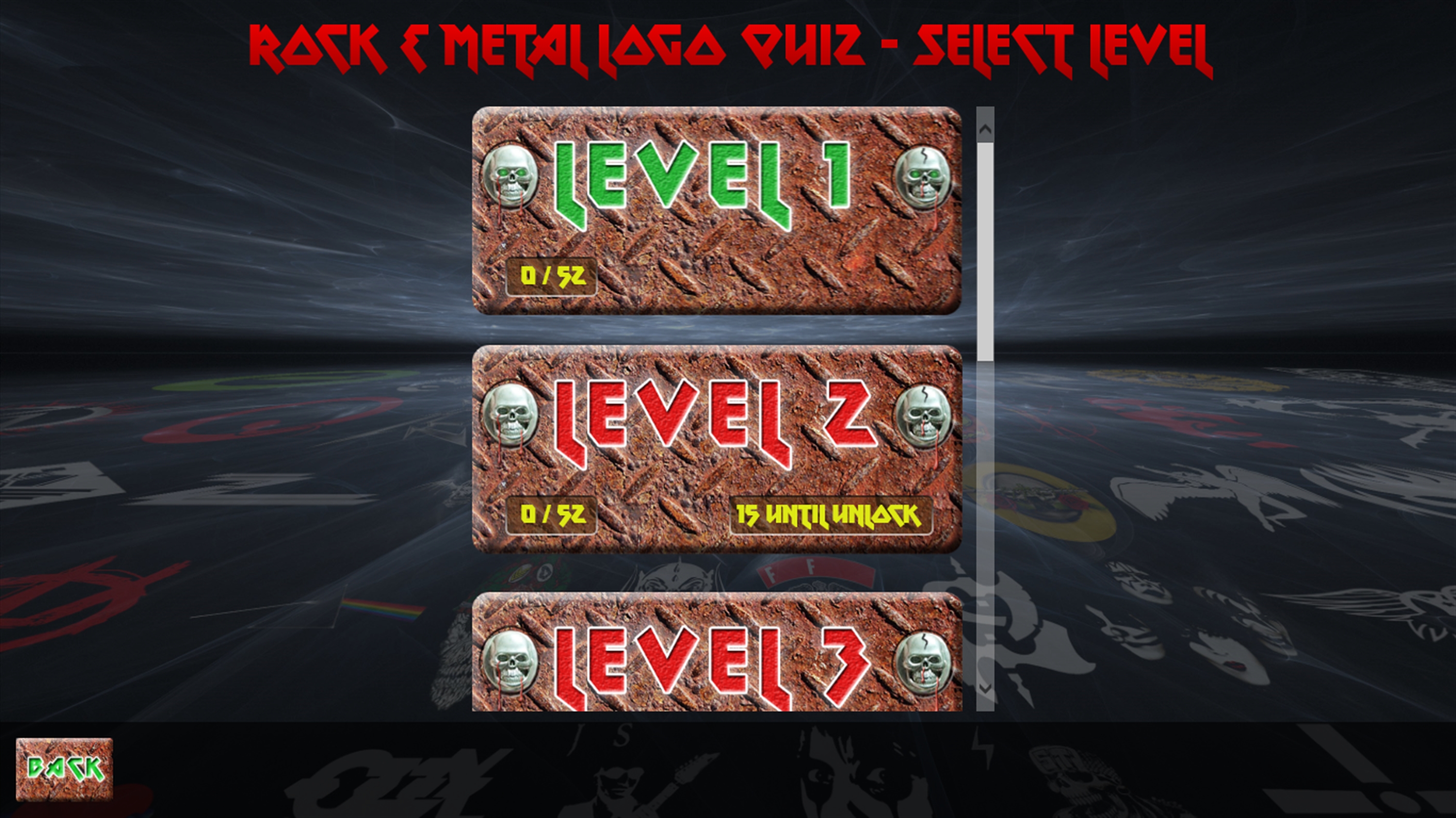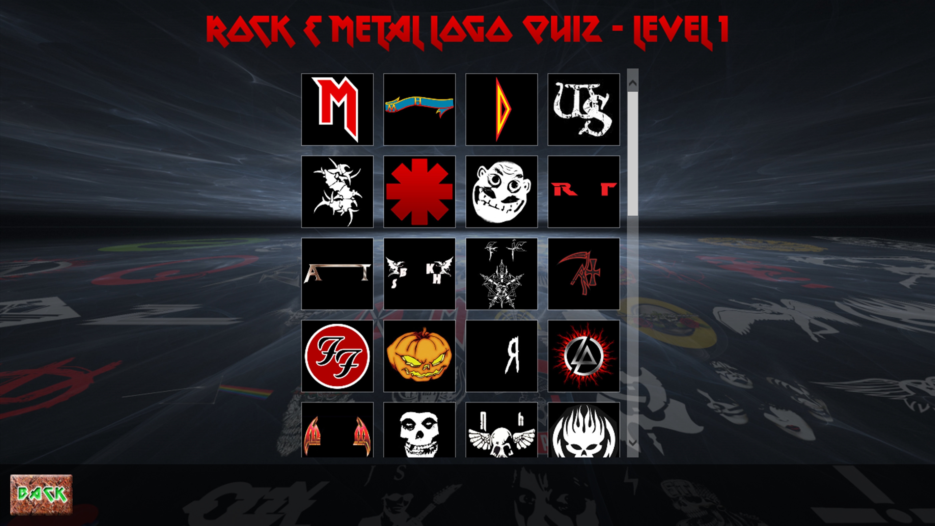 Features a beautiful graphical user interface with highly detailed band logos, and authentic rock guitar sounds effects to guide you on your way.
