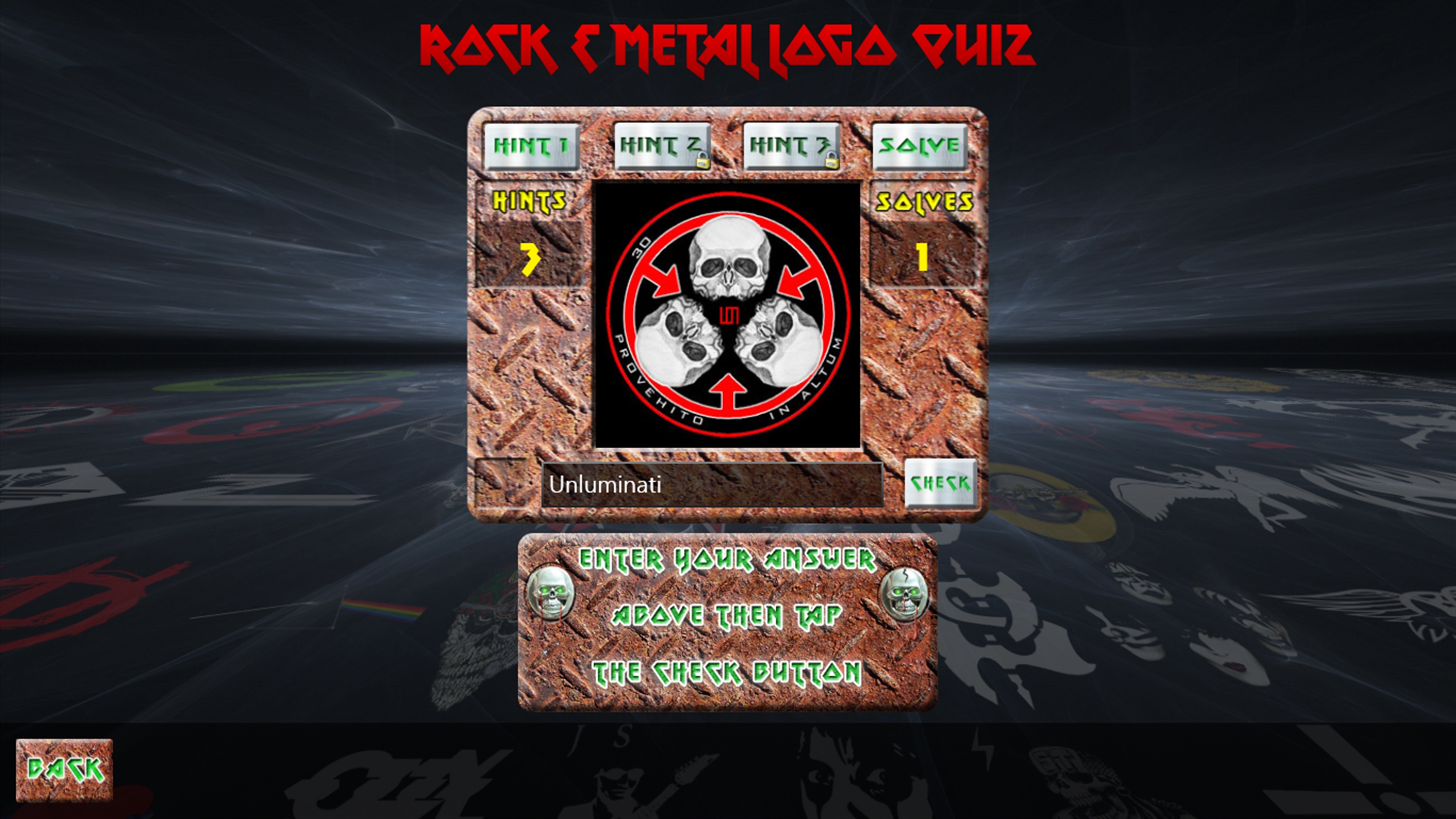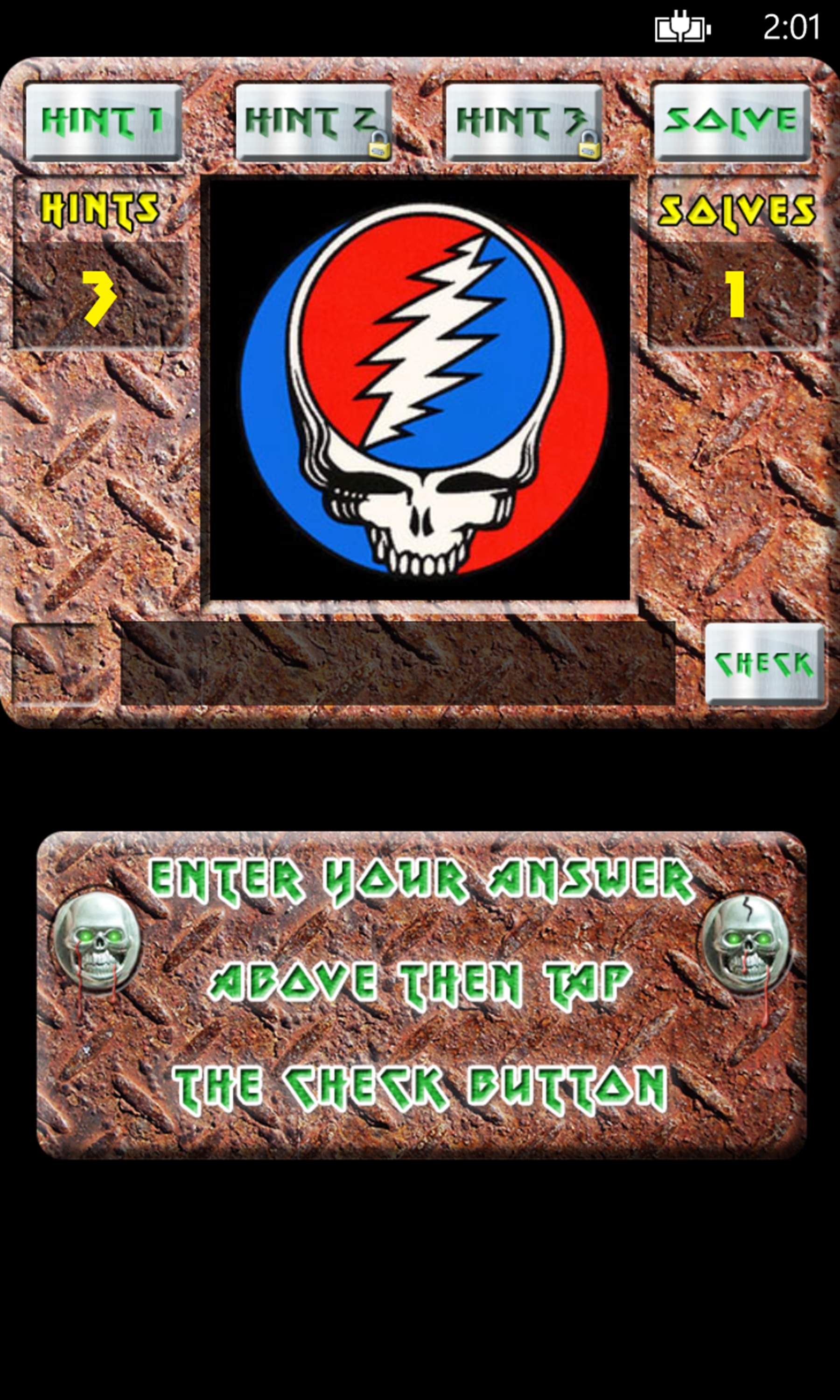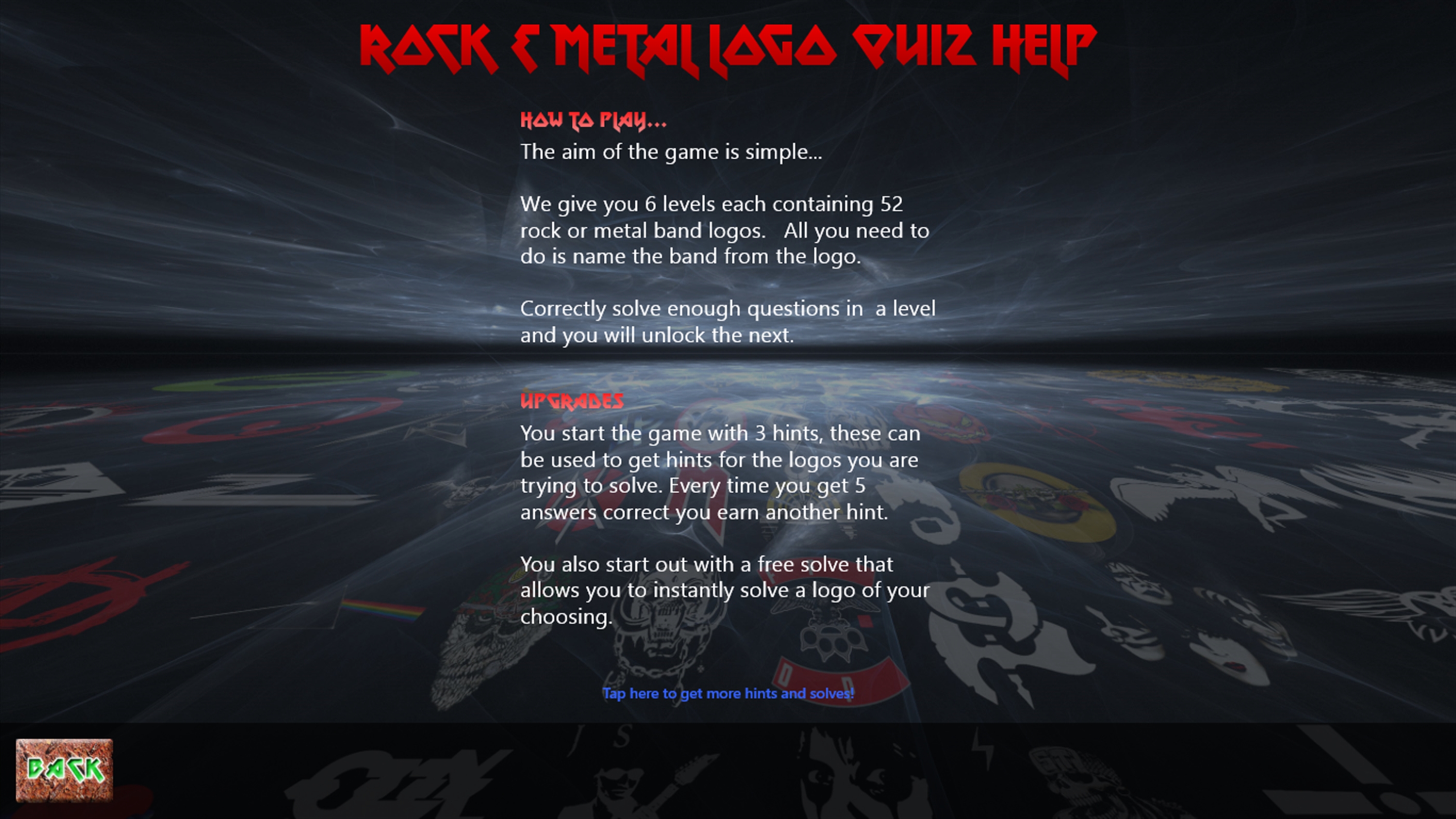 For correct answers you earn additional hints, answer enough questions correctly and you unlock the next level giving you even more great bands to name!