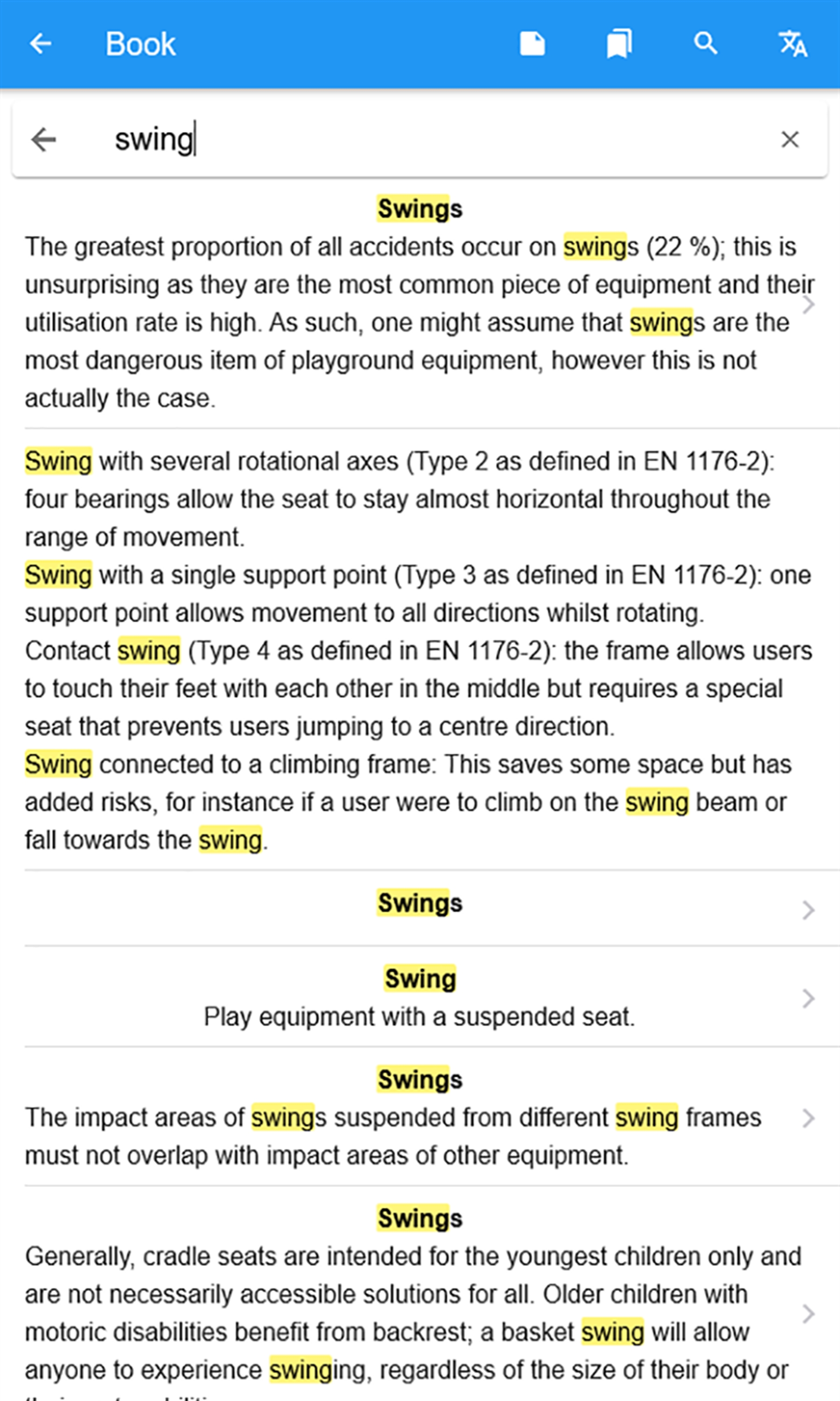 - EN 1176:2018 Playground equipment and surfacing; all parts.