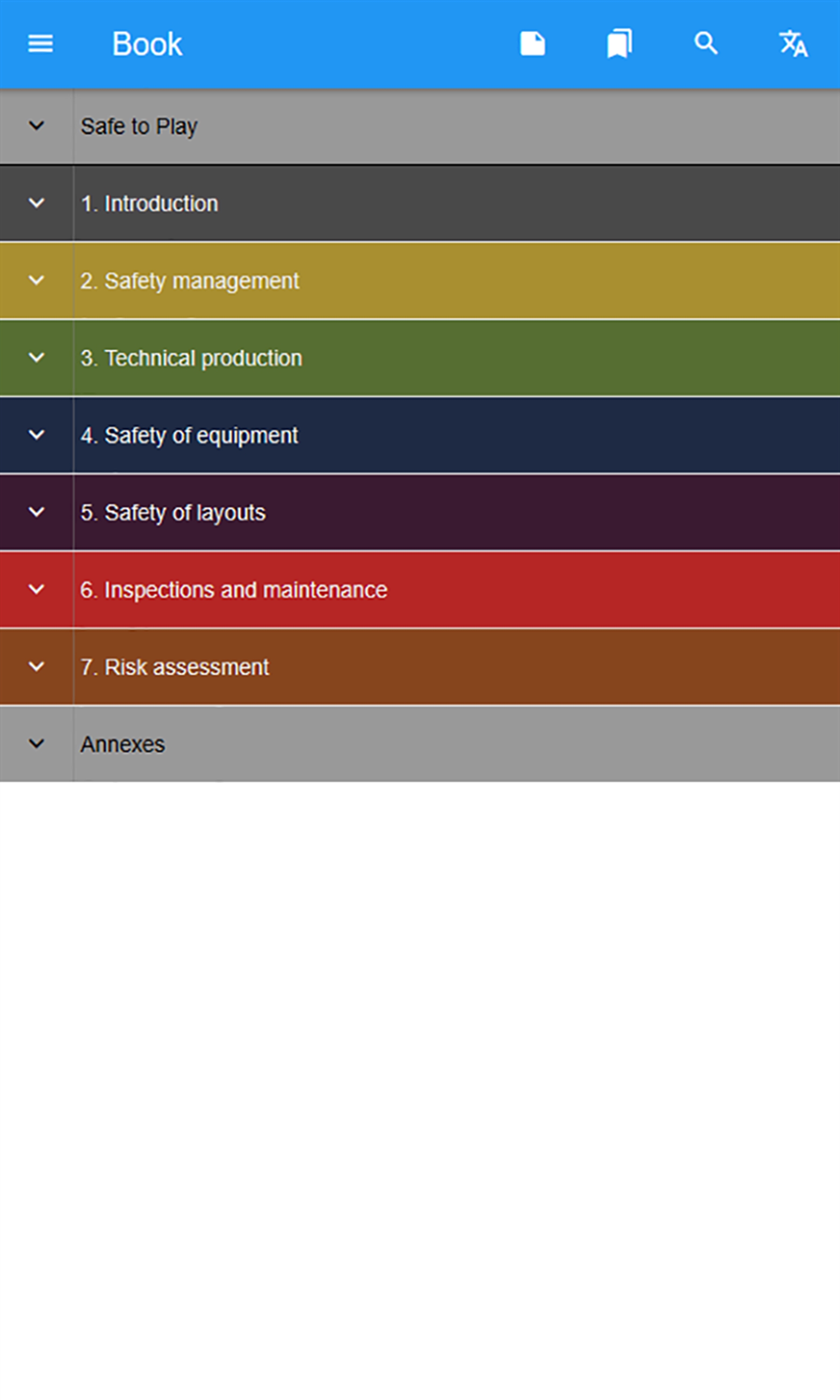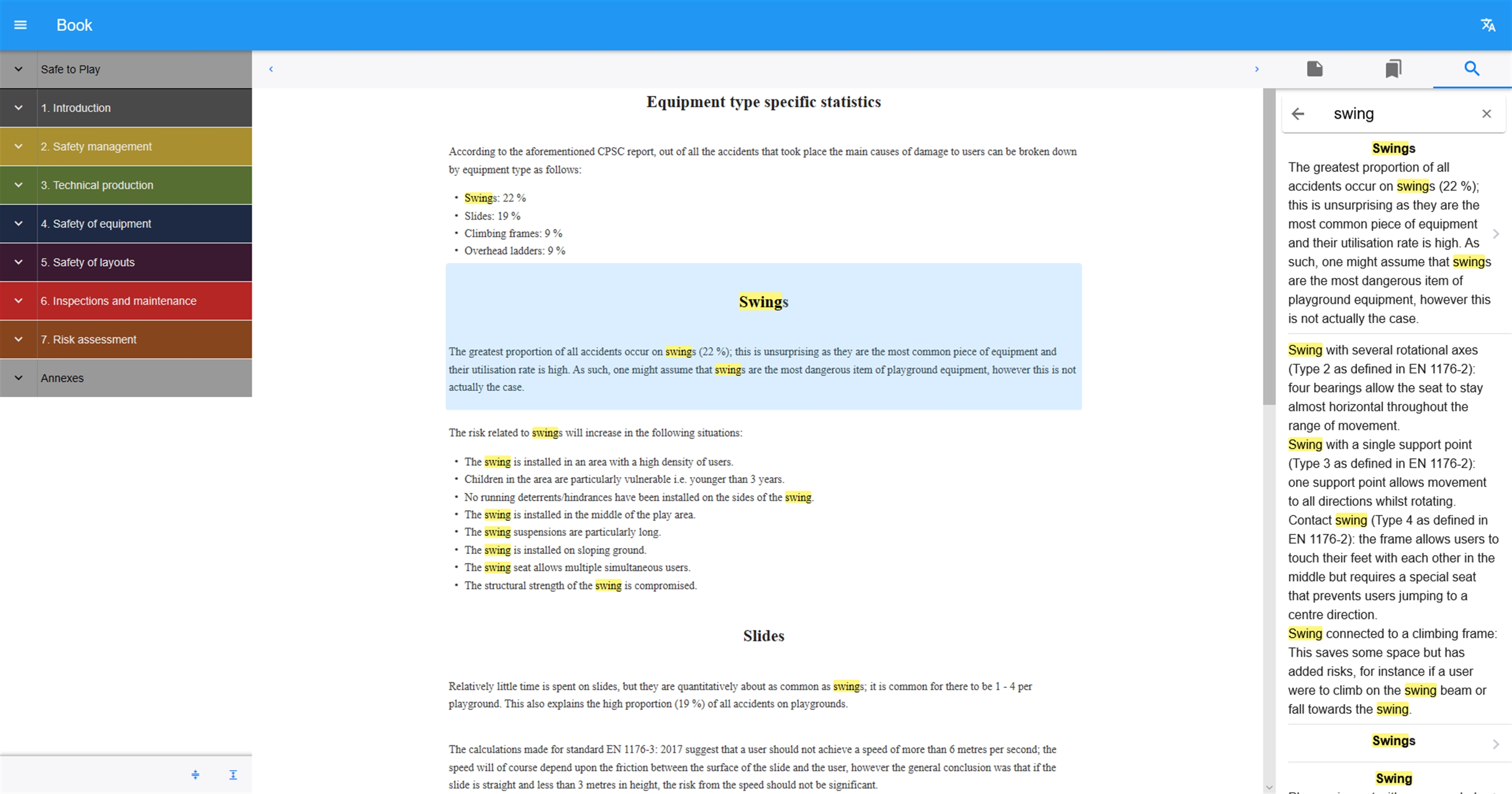 The information from standards and technical reports is presented with high quality visualizations and includes changes of requirements in past years plus reliable risk assessment from top experts of the field.