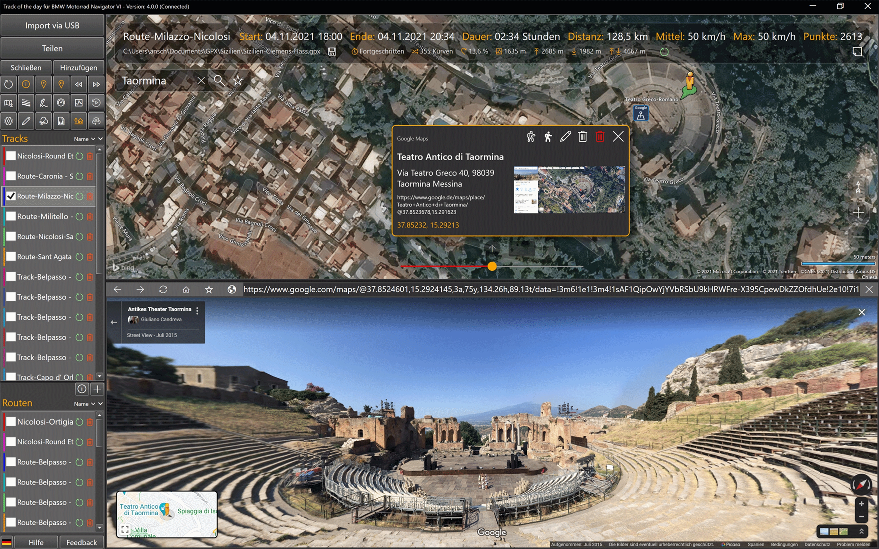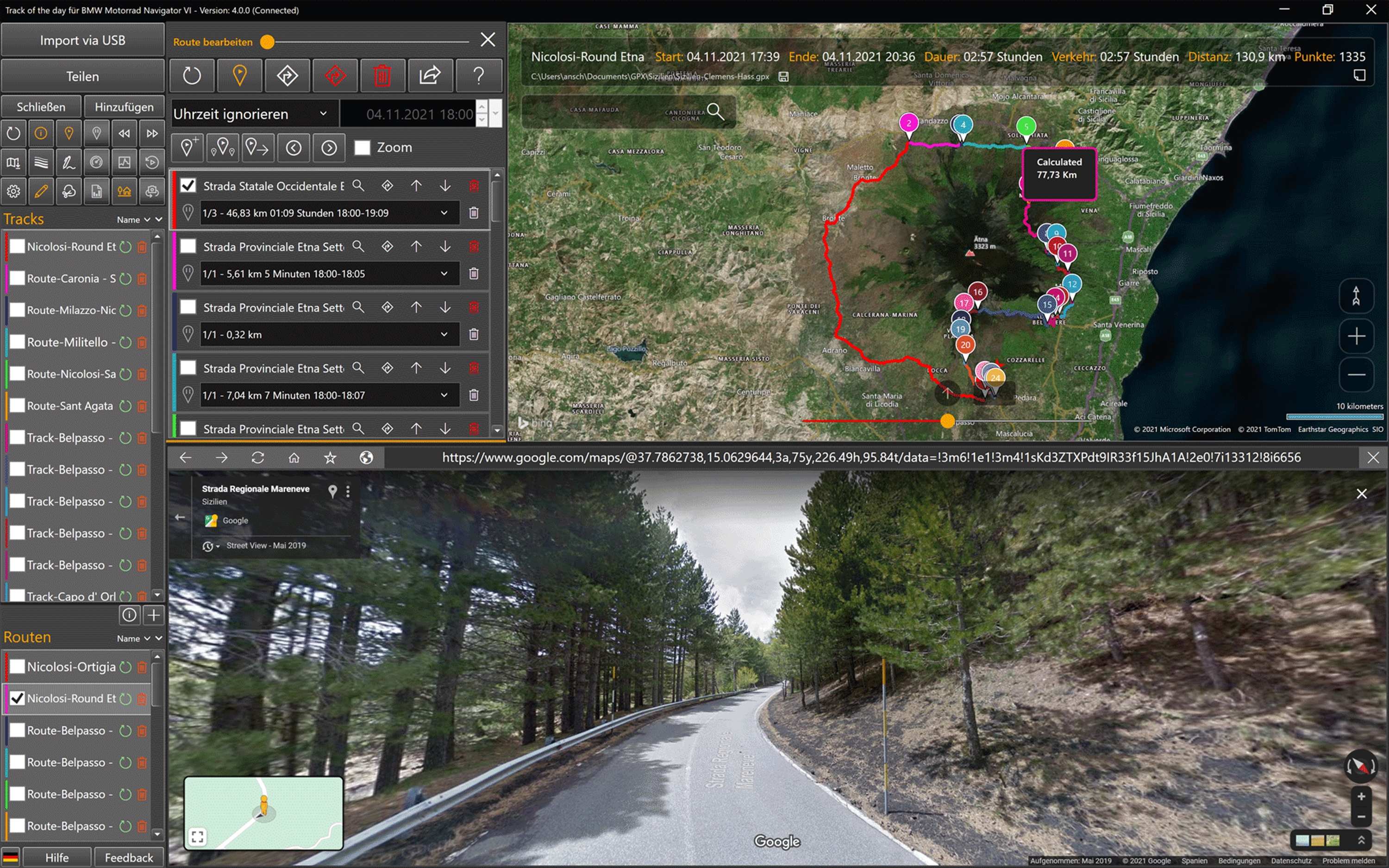Route planning has never been so efficient and easy. Already during the planning you can experience with Google Streetview what will wait on a route. Already during planning, the 'RouteMetrics' calculate important parameters such as fun factor, curviness, altitude profile and other information fully automatically in the background.