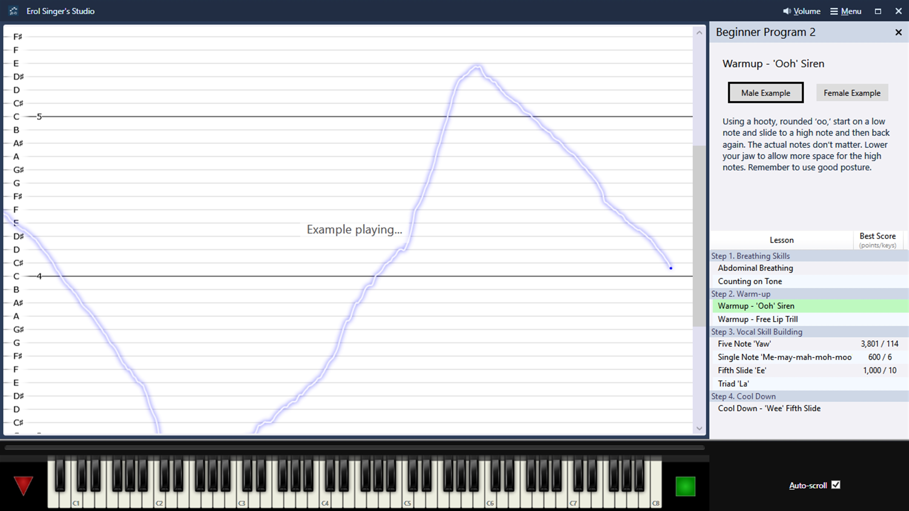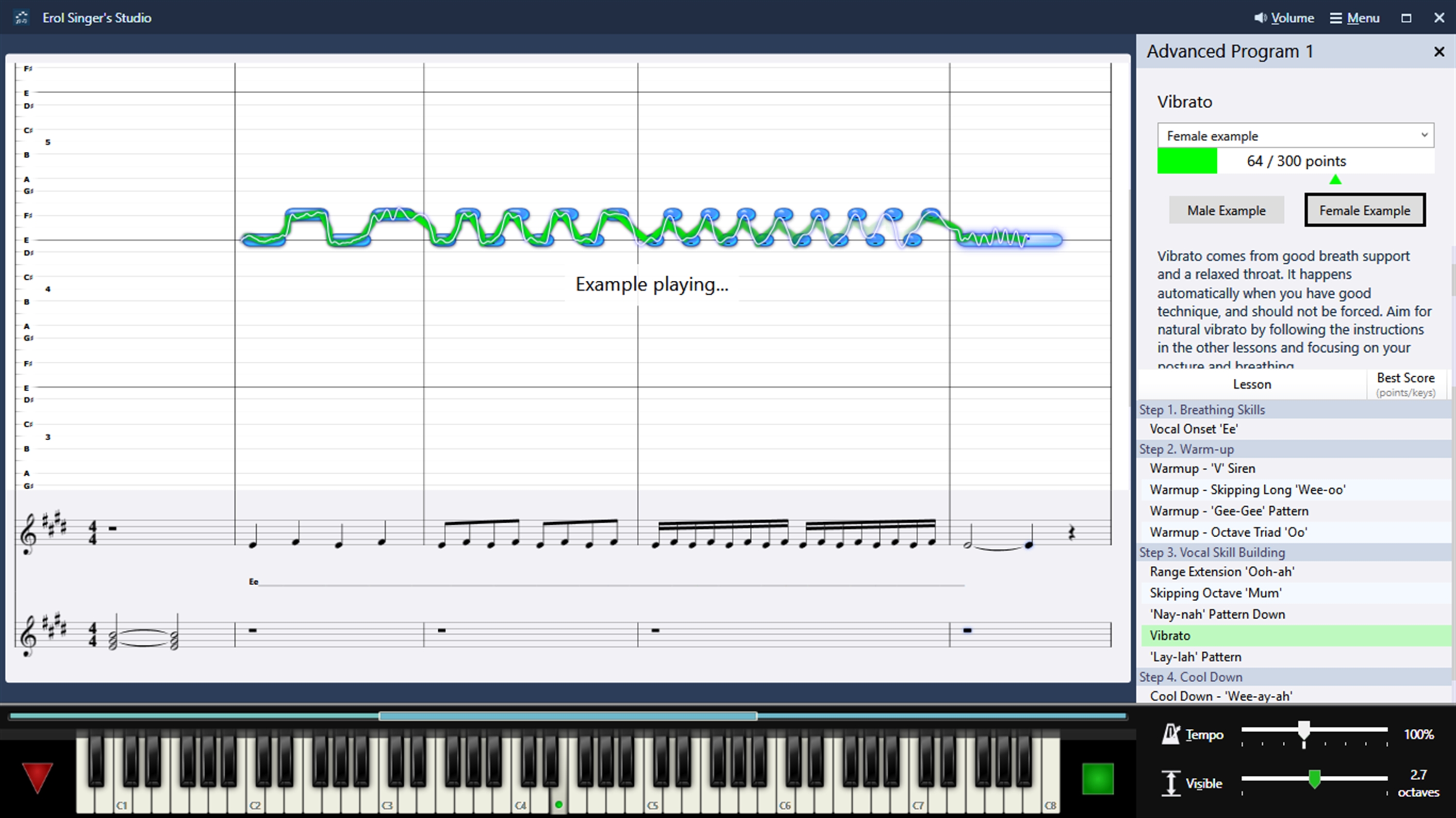 - Detect your vocal range, and customize the lessons to a comfortable range for you