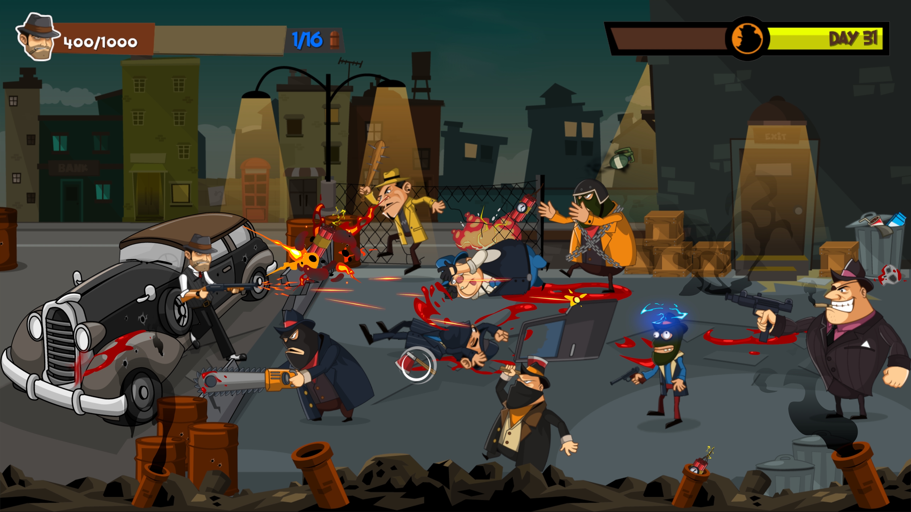 Your city was safe from crimes for a long time. But these times had to end. A mafia boss Al Calzone came with his thugs and wants local business owners to pay tribute for "protection". Some people started to pay cash, some paid with theirs lives. It was only a matter of time when they will visit your mothers' flowers store. You can't wait, time to get rid of these mobsters and show who is the real boss here.