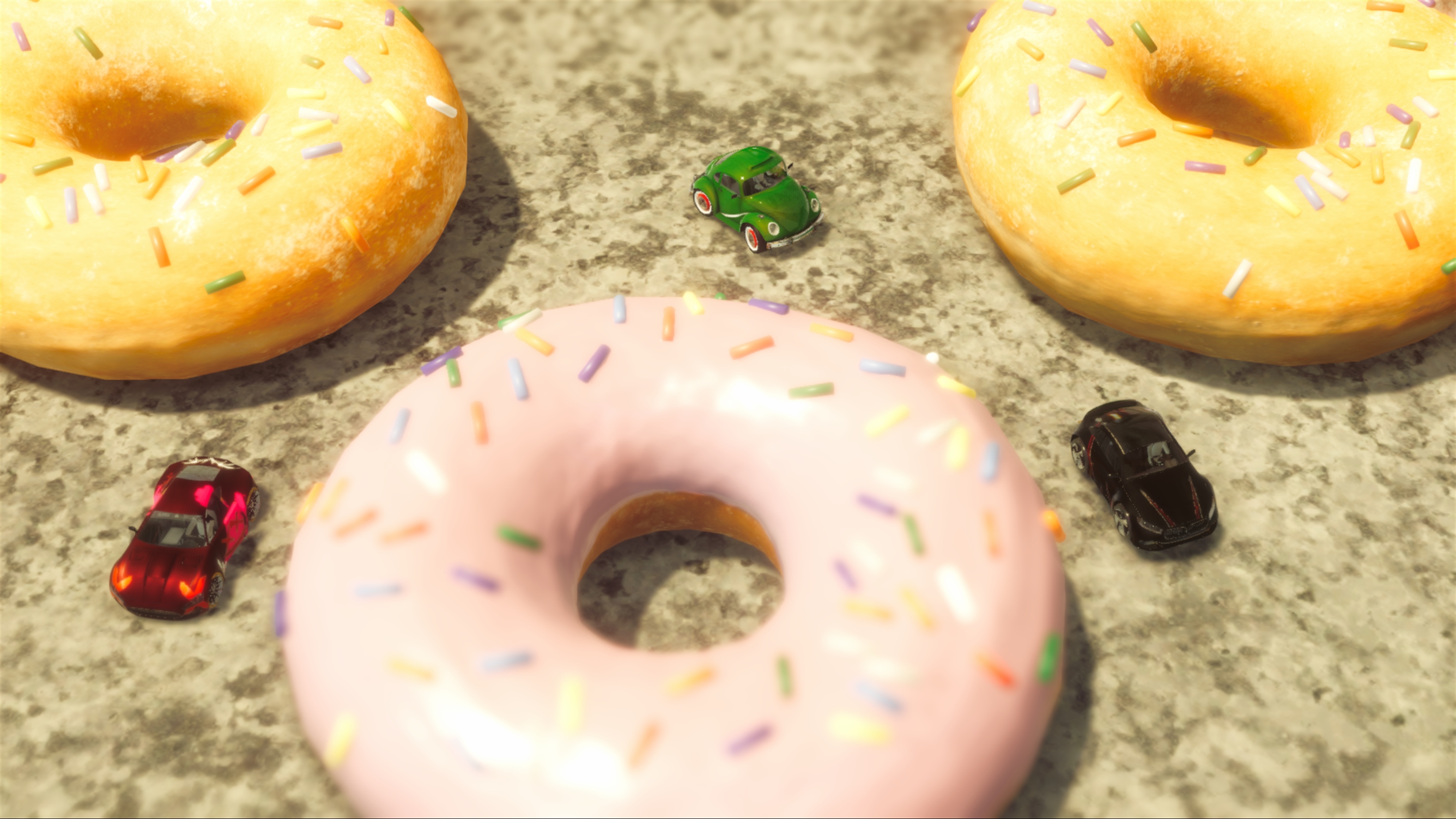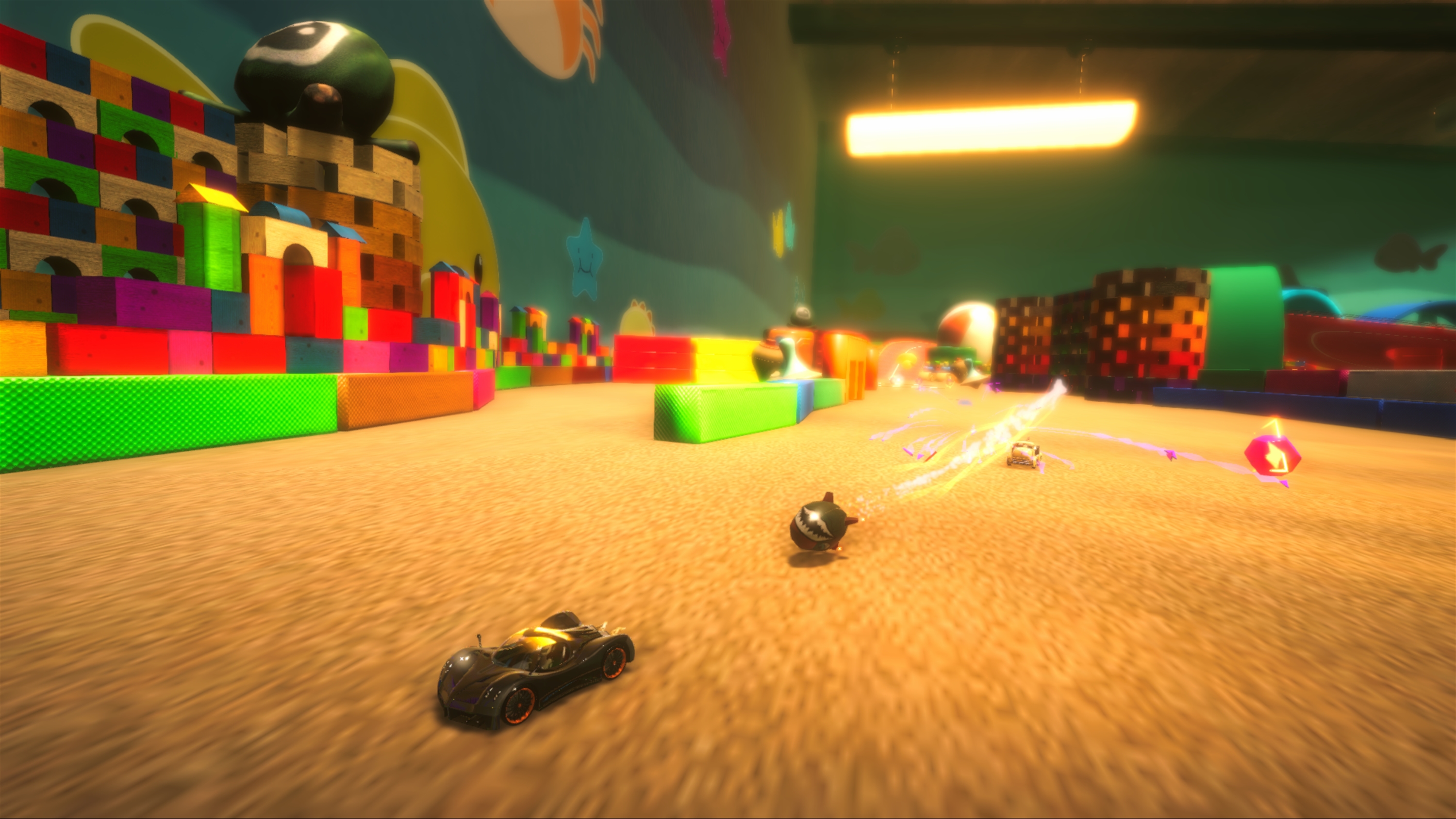 Outrace your opponents… or crush them to scrap! You can fight them up close or use one of the many power-ups scattered throughout the race. Unlock and collect the 20 toy cars, each with their own statistics, by playing through career mode and then improve them by installing upgrades or changing their paintjobs.