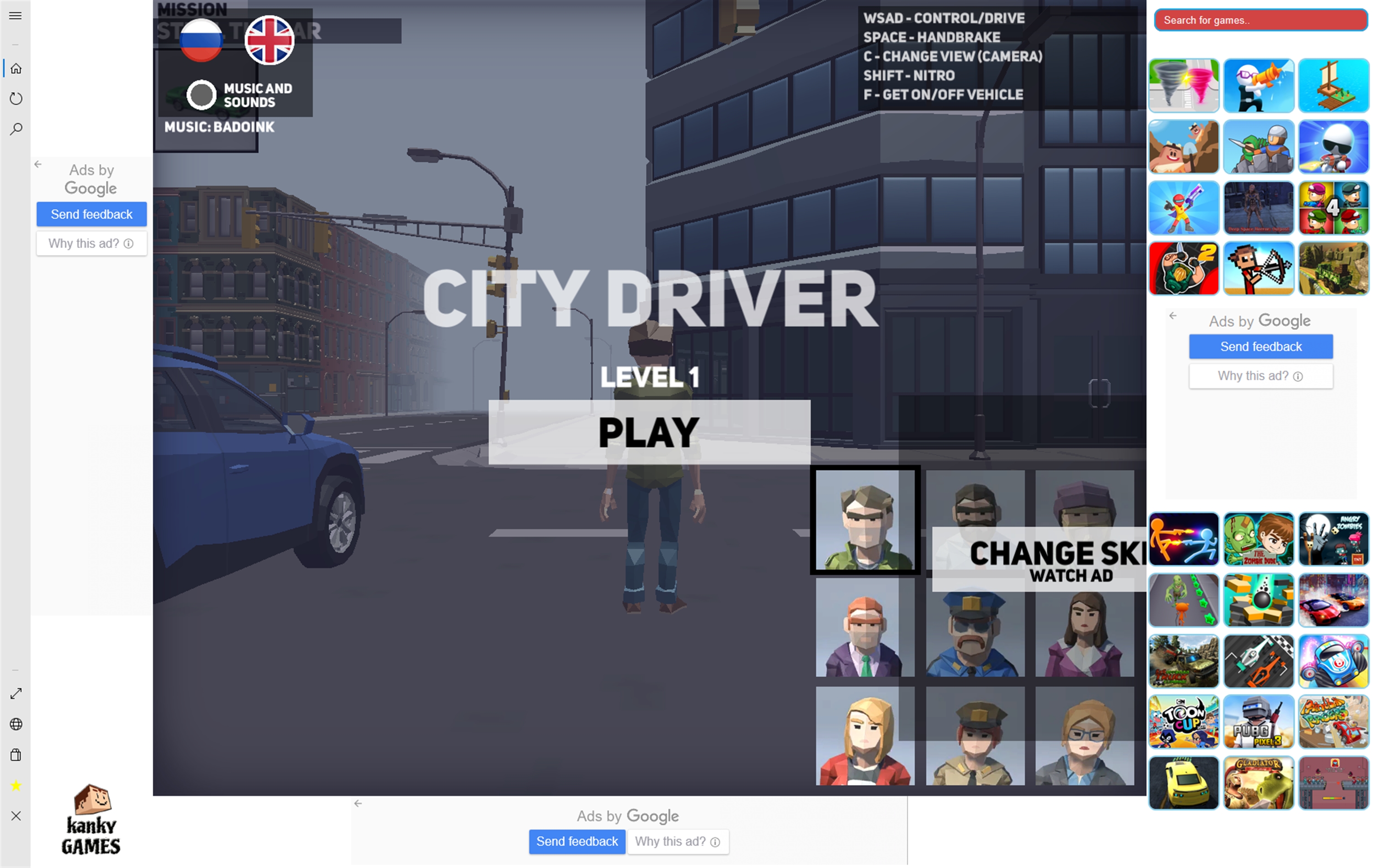 WSAD - Moving / Driving Spacebar - Handbrake C - Change the view of the camera Shift - Nitro F - Get in / Out of the car
