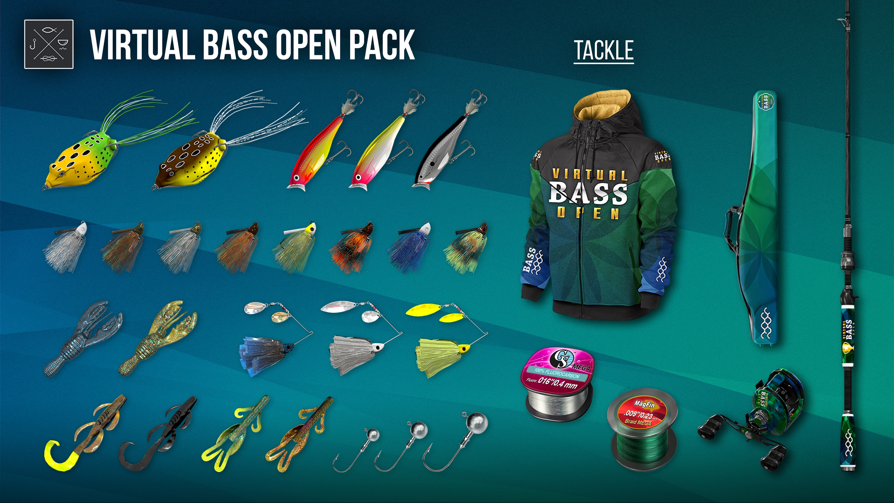 Virtual Bass Open Pack is a complete all-in-one Tournament tackle setup to enhance your competitive performance and take you to Victory!