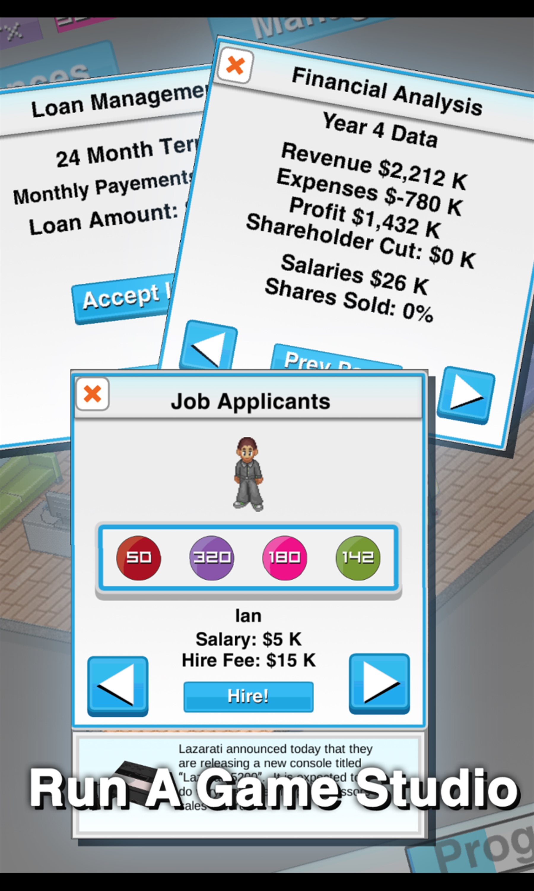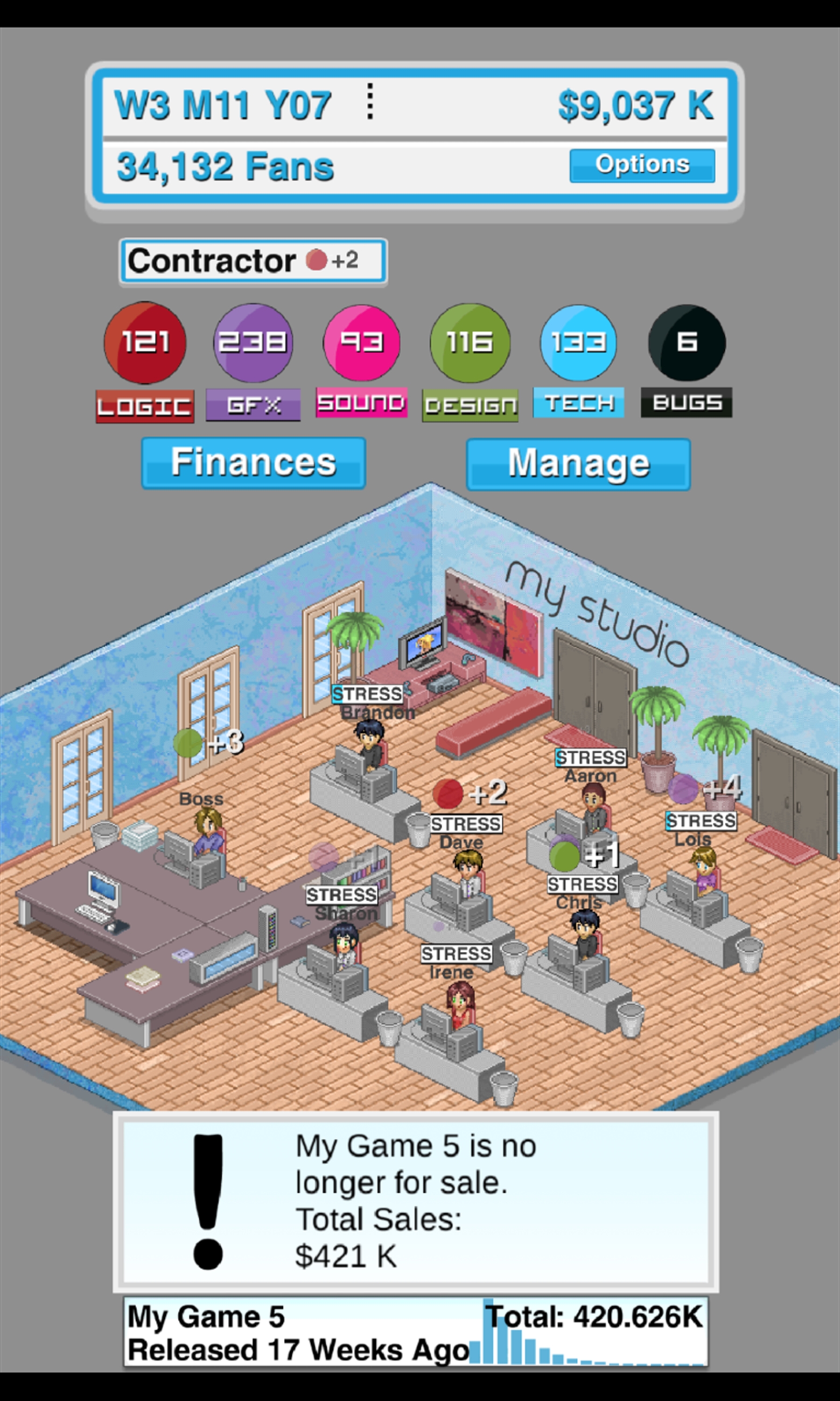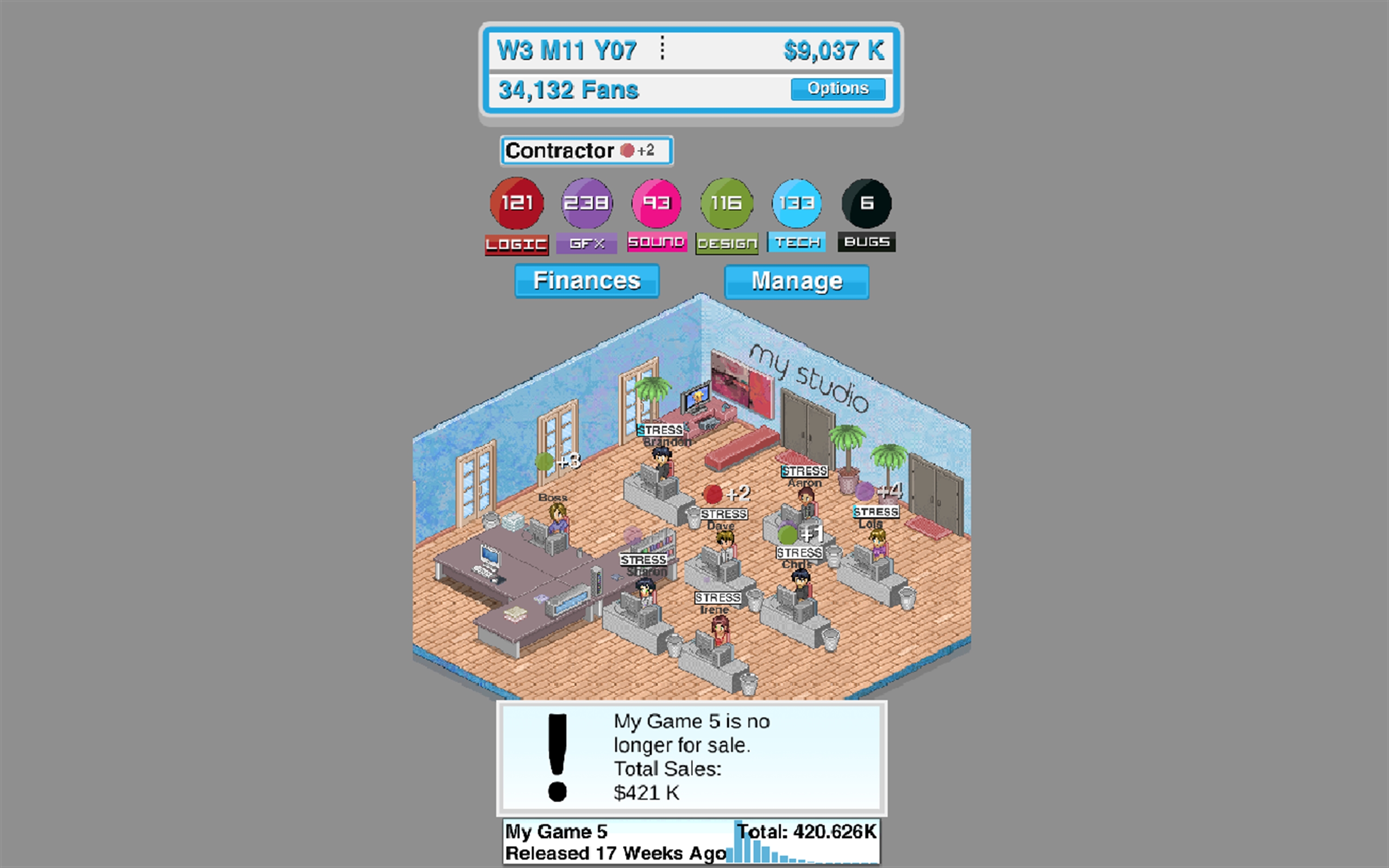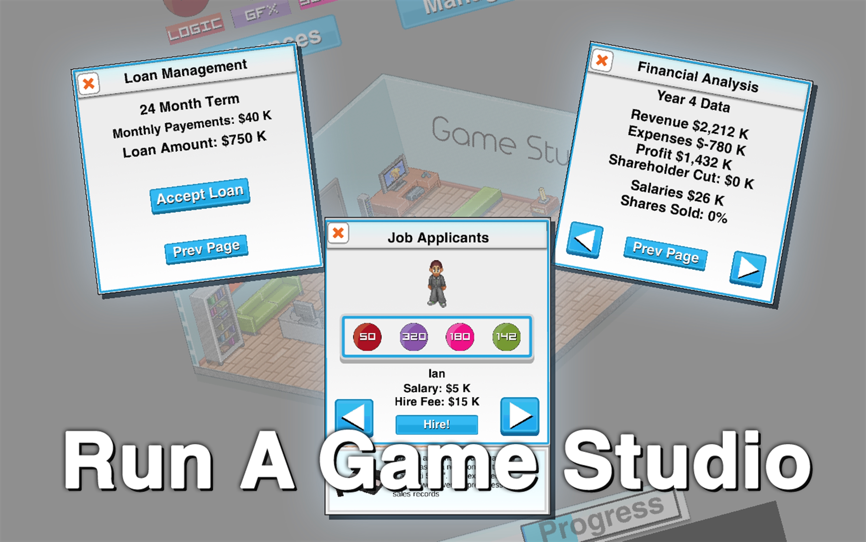 Build a gaming empire! In Game Studio Tycoon you begin as a new start-up looking to make it big in the gaming industry. Over the next 40 years you will be able to make games of all sizes on over 40 different platforms! Do you have what it takes to be the best in the business?
