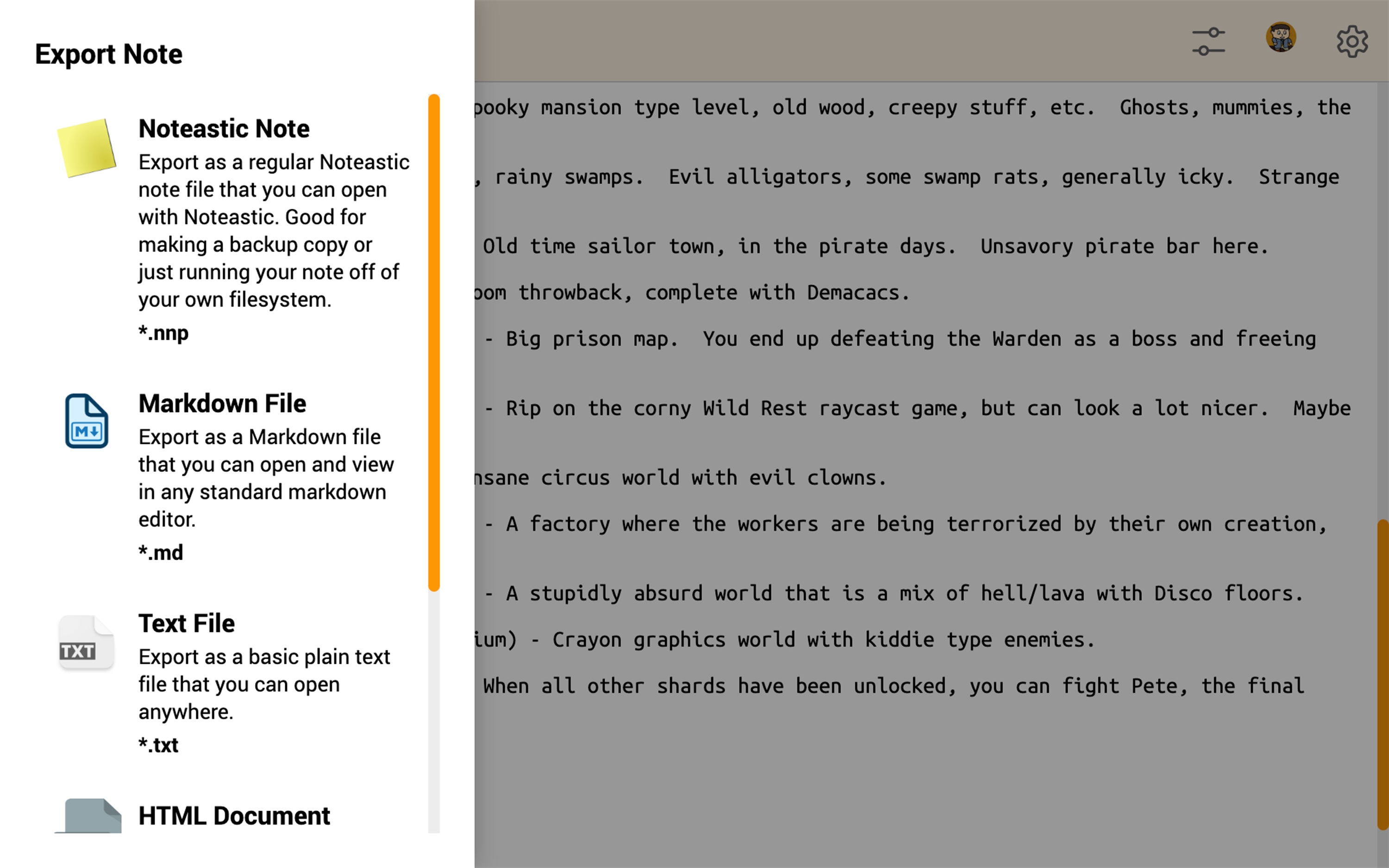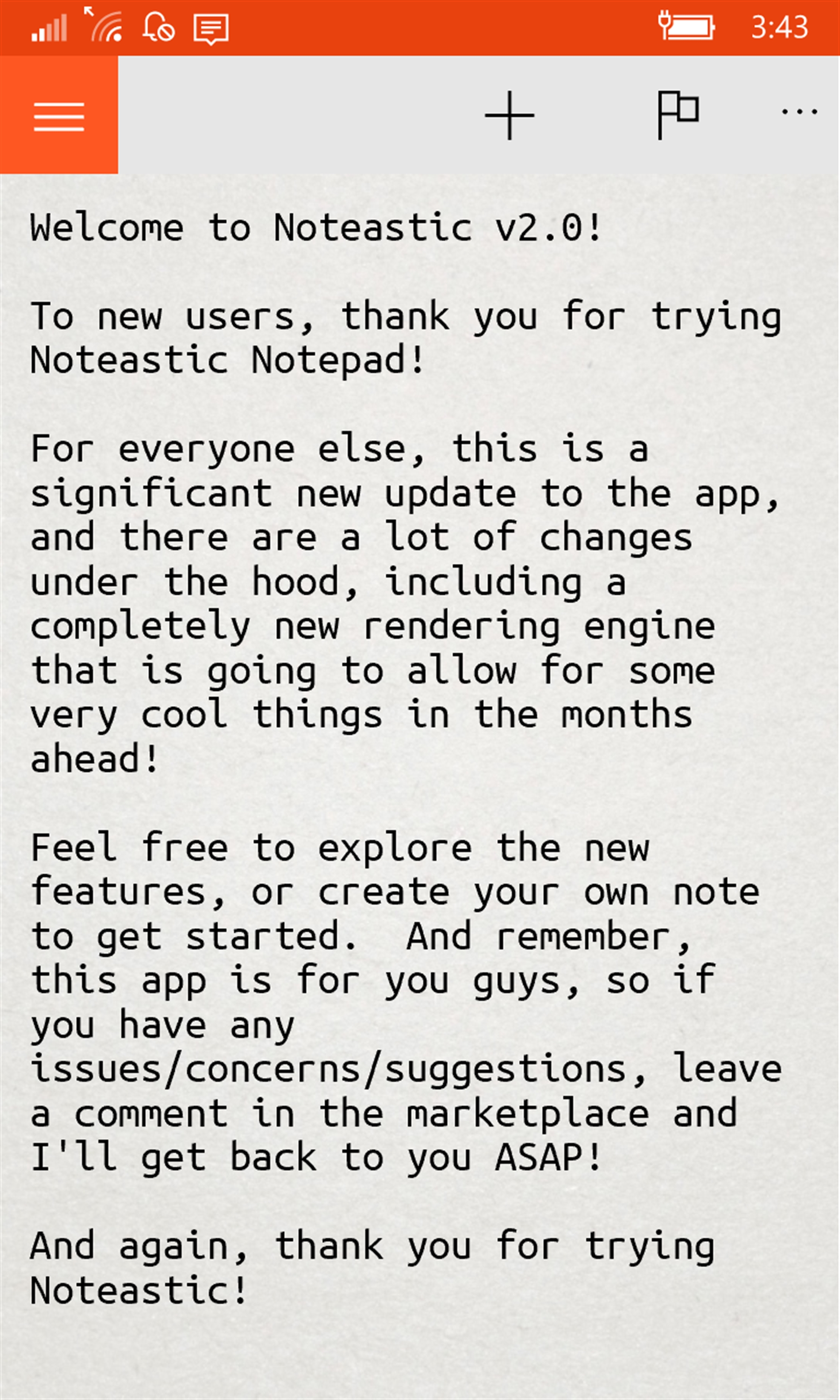 I know there are tons of other notepad apps you can choose from, so I would like to make Noteastic the best it can be. I will continually improve the app based on your suggestions and feedback. This app is for you guys. I know that note taking is one of the most important features on your device, so you deserve to have the best possible notepad!