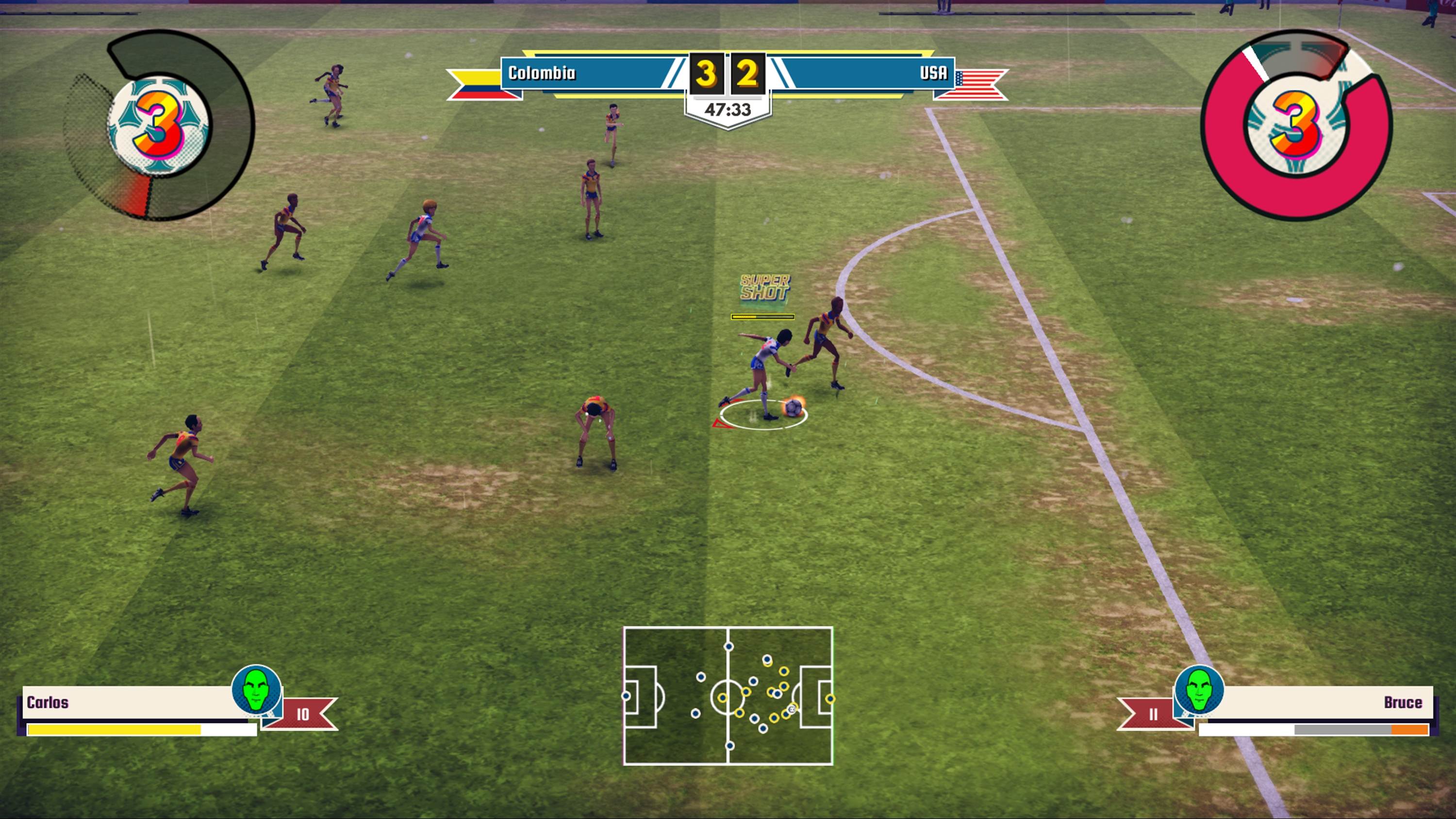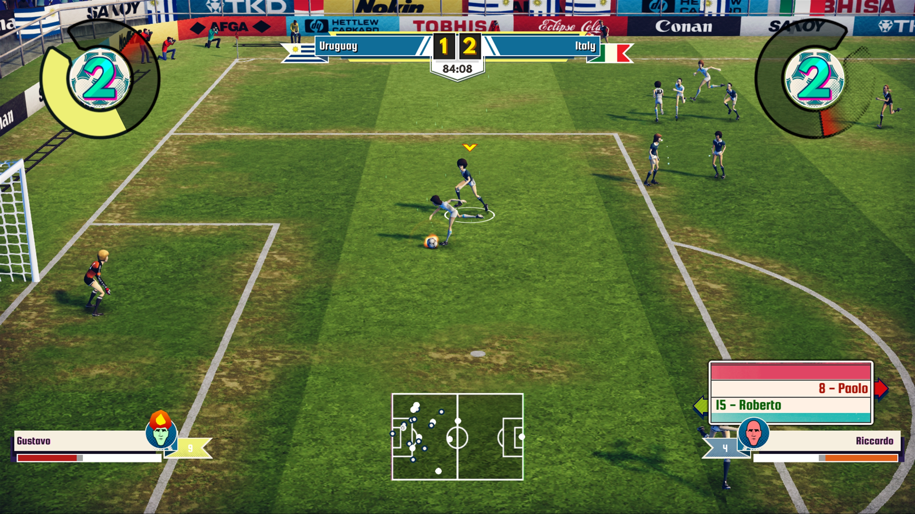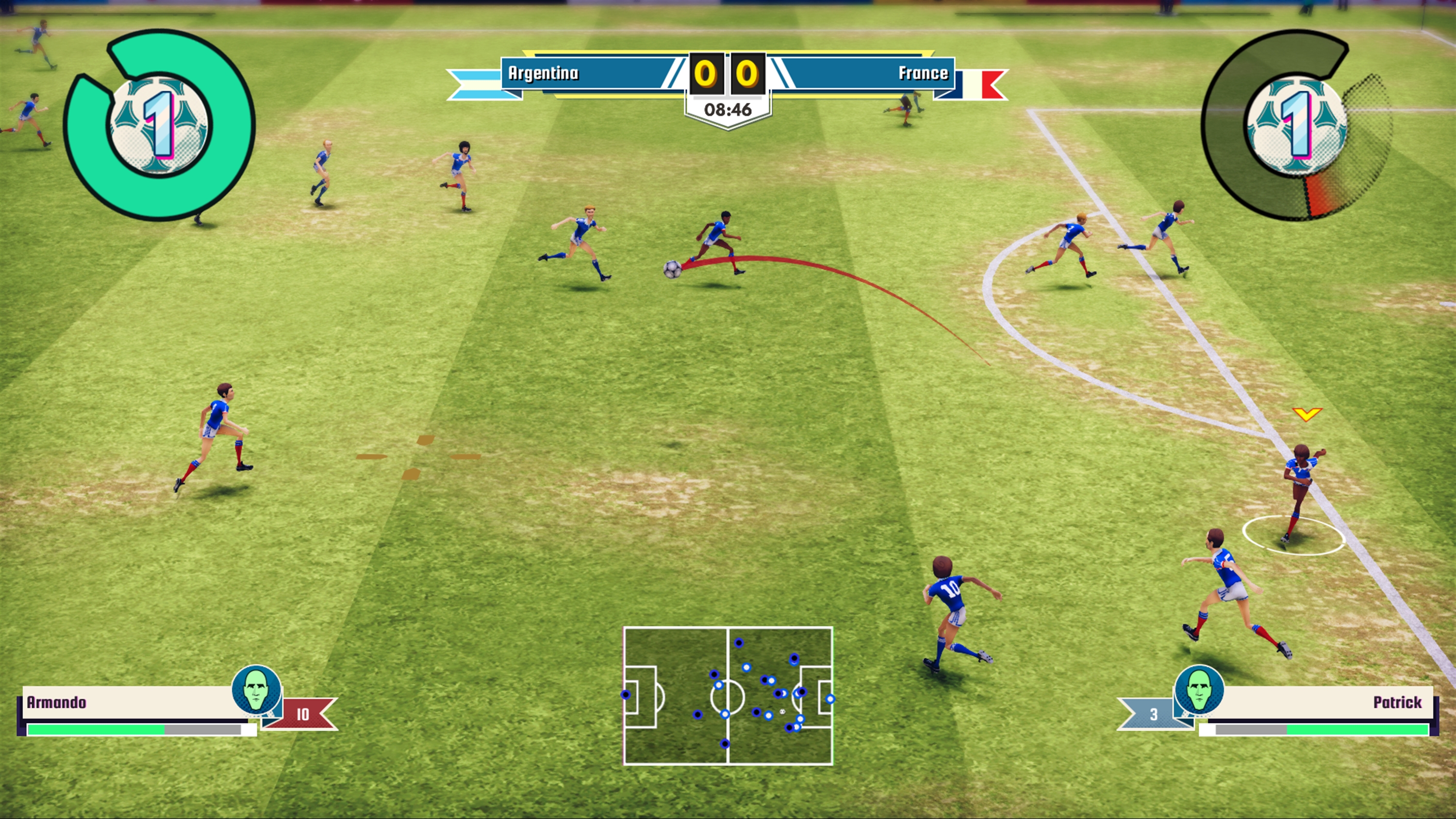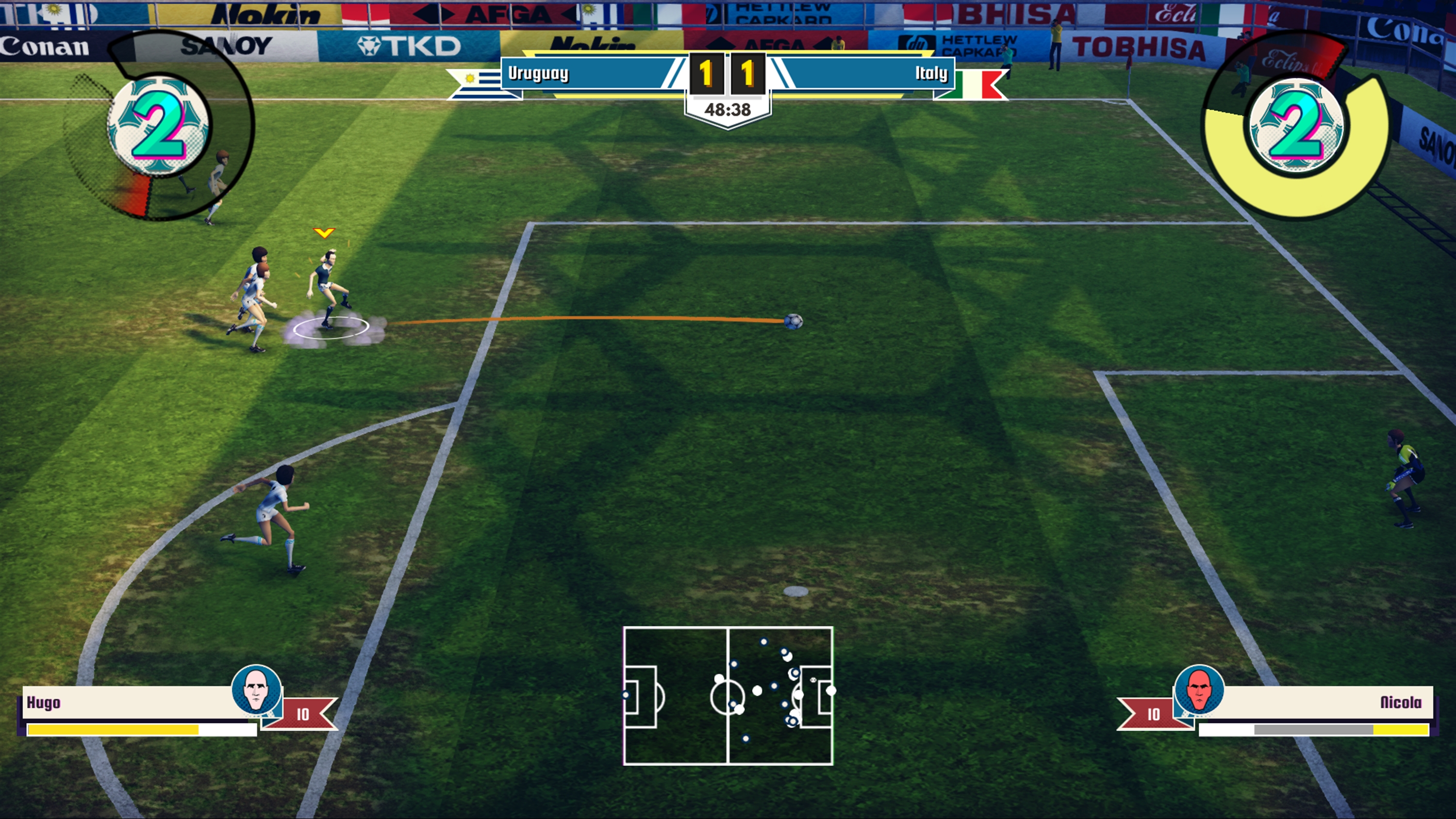 Playing the campaing mode unlocks stickers that you can use to boost the stats of your team or improve morale, maybe even obtain other special advantages. Choose from 36 teams full of glorious haircuts, moustaches and legends in short shorts. Lead them to glory and win the World Cup!