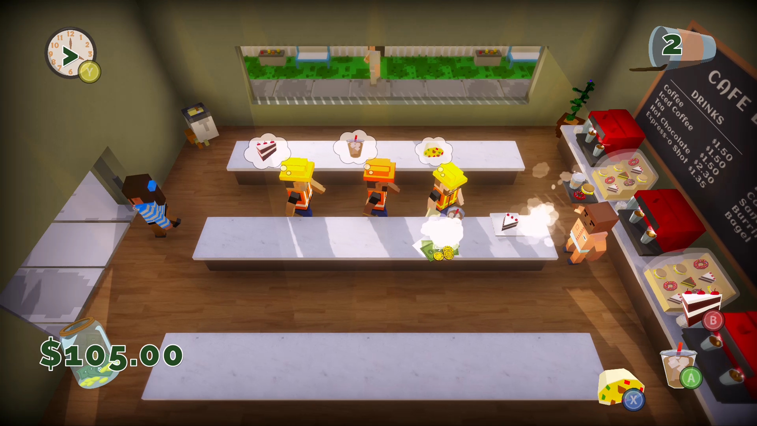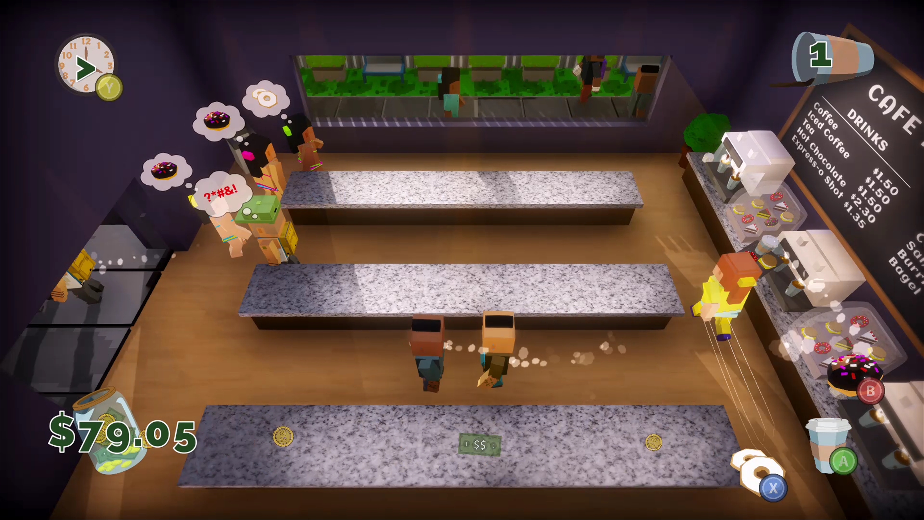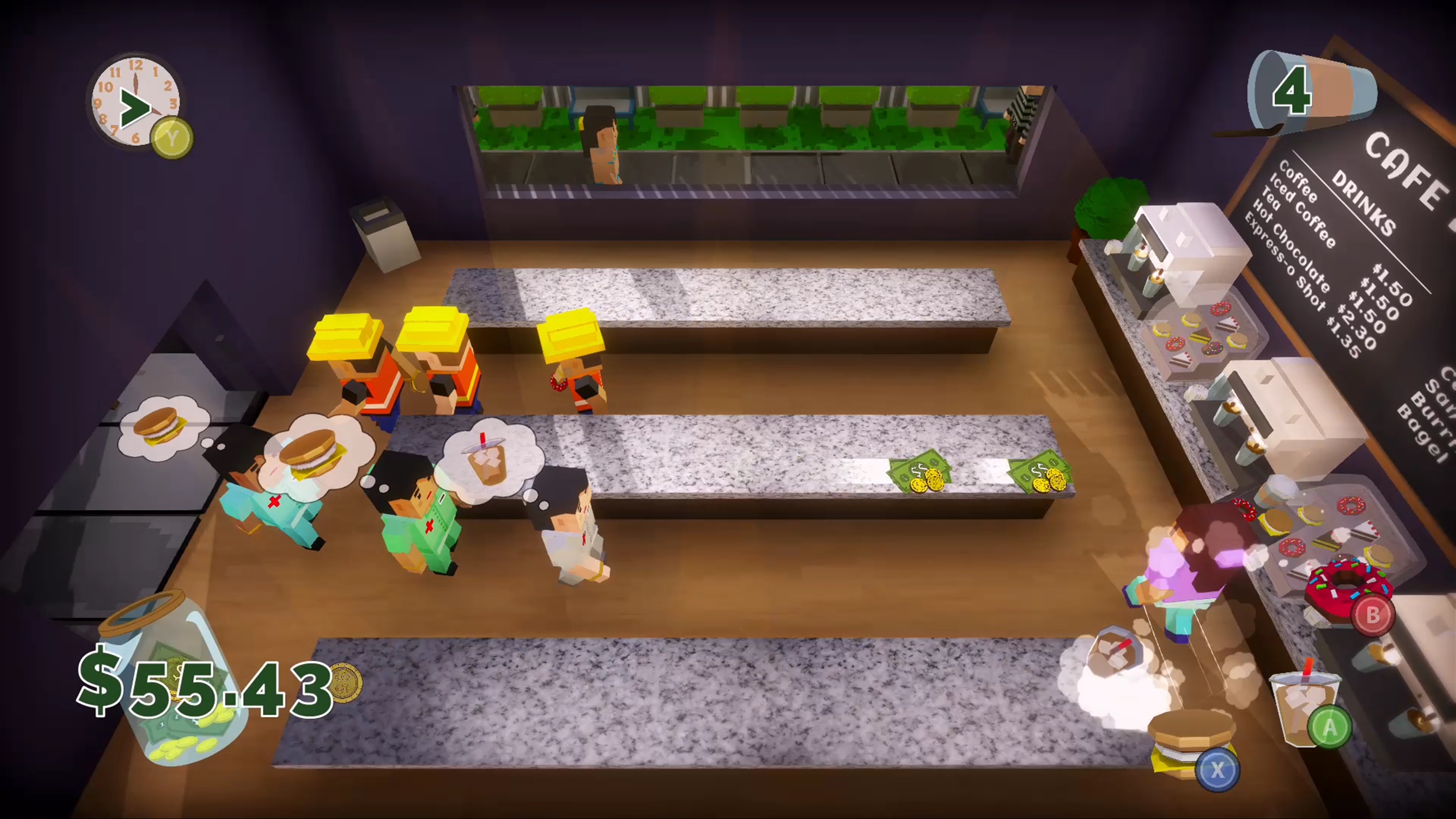 Play as a barista who has been hired to manage a cafe all on your own. Your boss is a stickler who will fire you if you make too many mistakes! Customers will venture into your cafe with one desire - which you must fulfill before the reach the end of their line. Make sure you don't waste any food or forget to pick up their payment. Beware, the more the day goes on, the more quickly customers will come in!