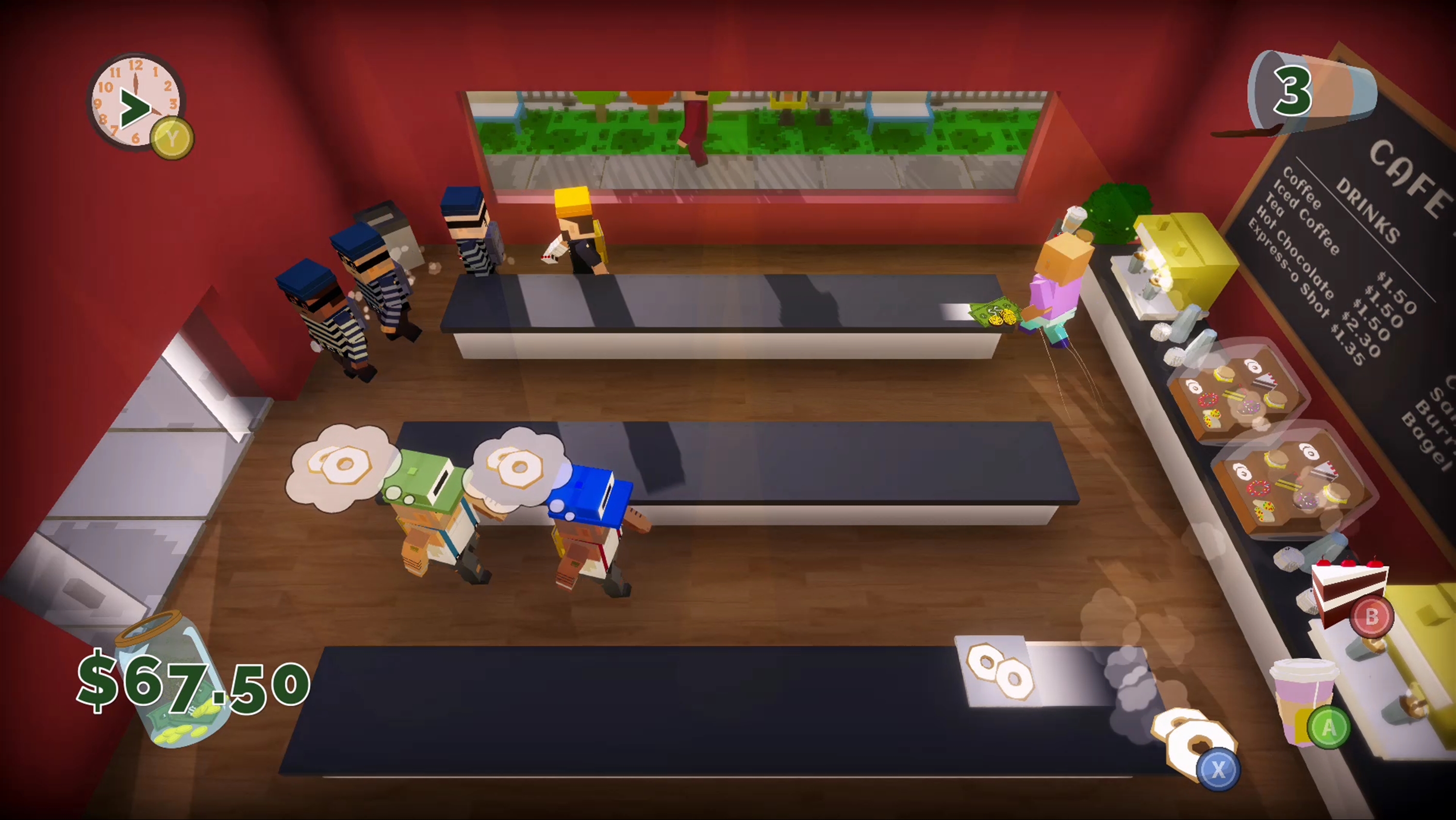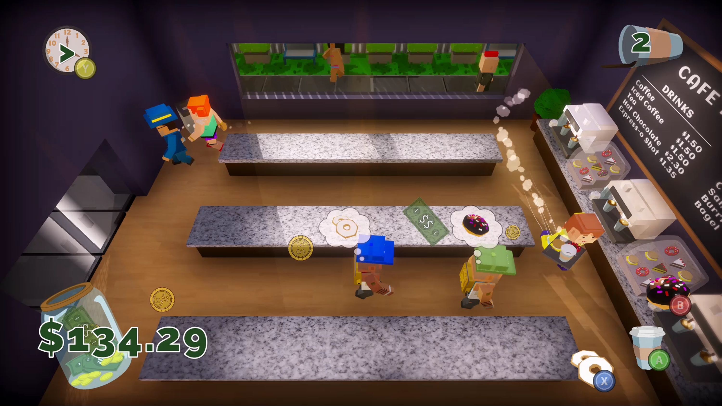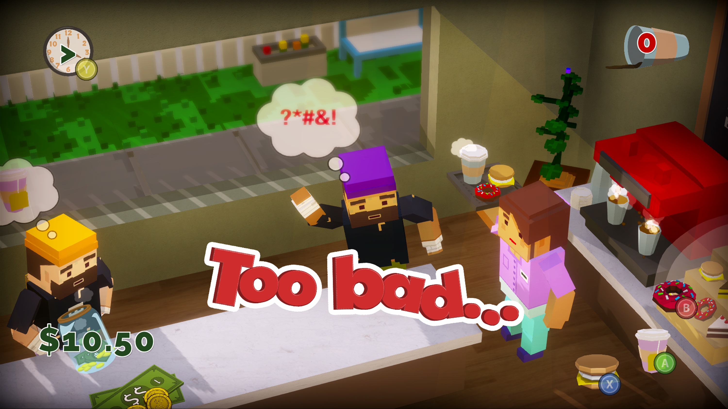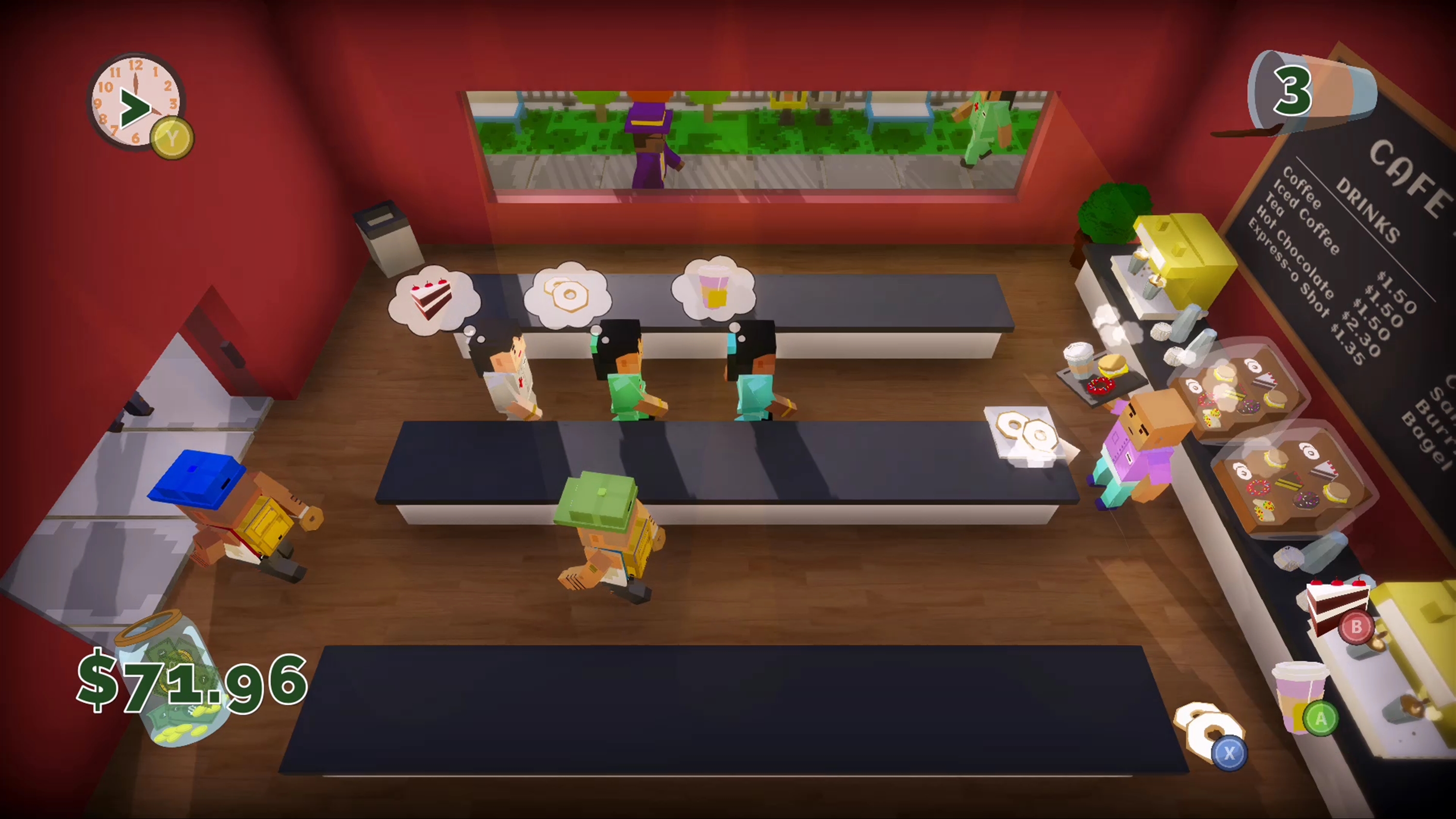 Play as a barista who has been hired to manage a cafe all on your own. Your boss is a stickler who will fire you if you make too many mistakes! Customers will venture into your cafe with one desire - which you must fulfill before the reach the end of their line. Make sure you don't waste any food or forget to pick up their payment. Beware, the more the day goes on, the more quickly customers will come in!