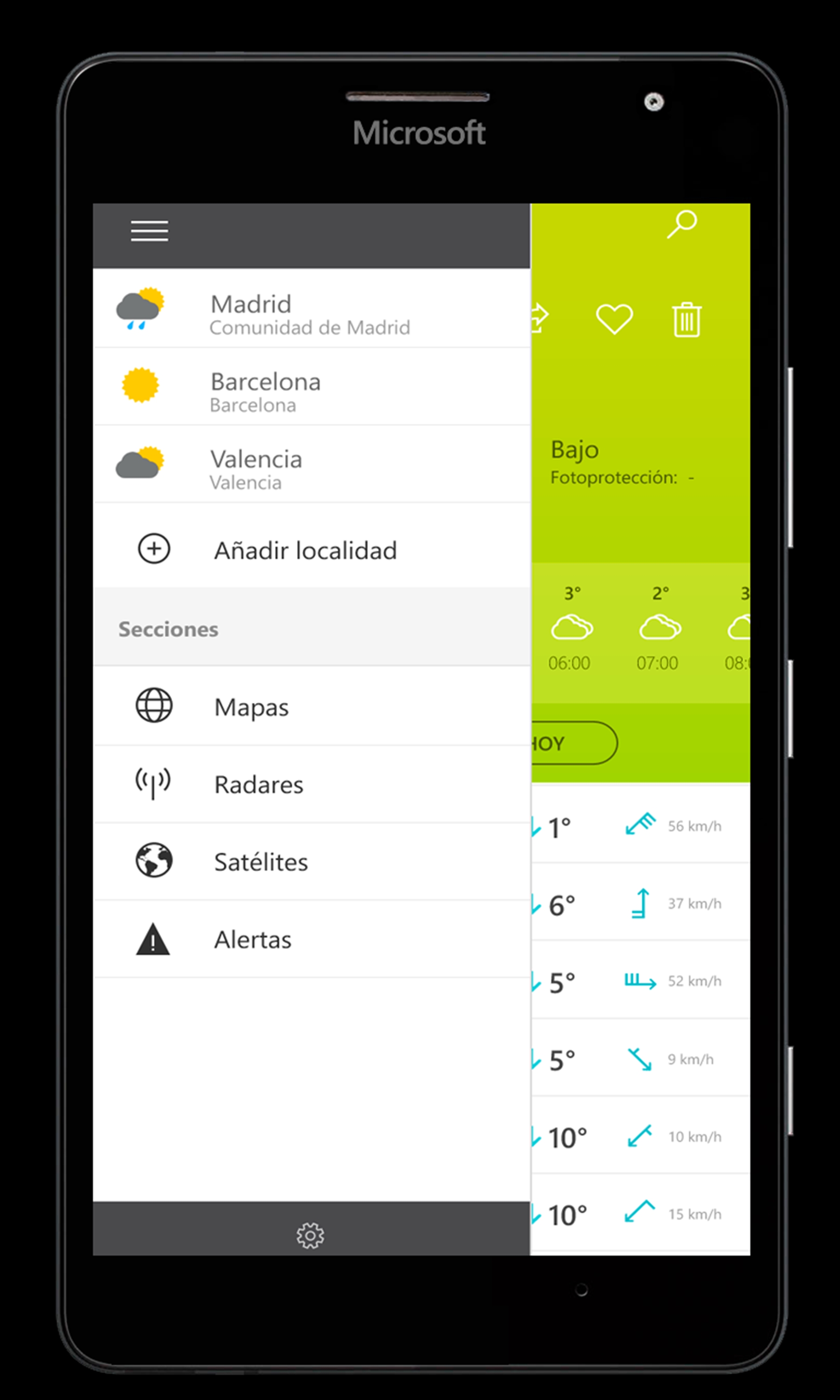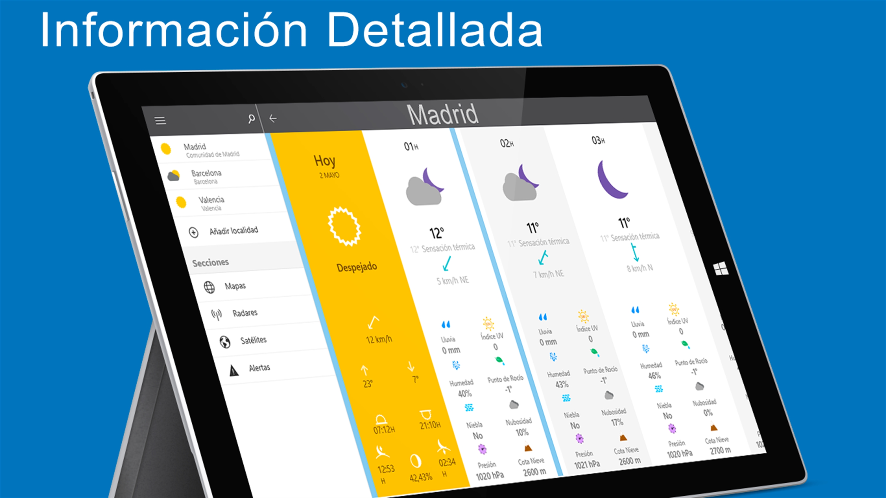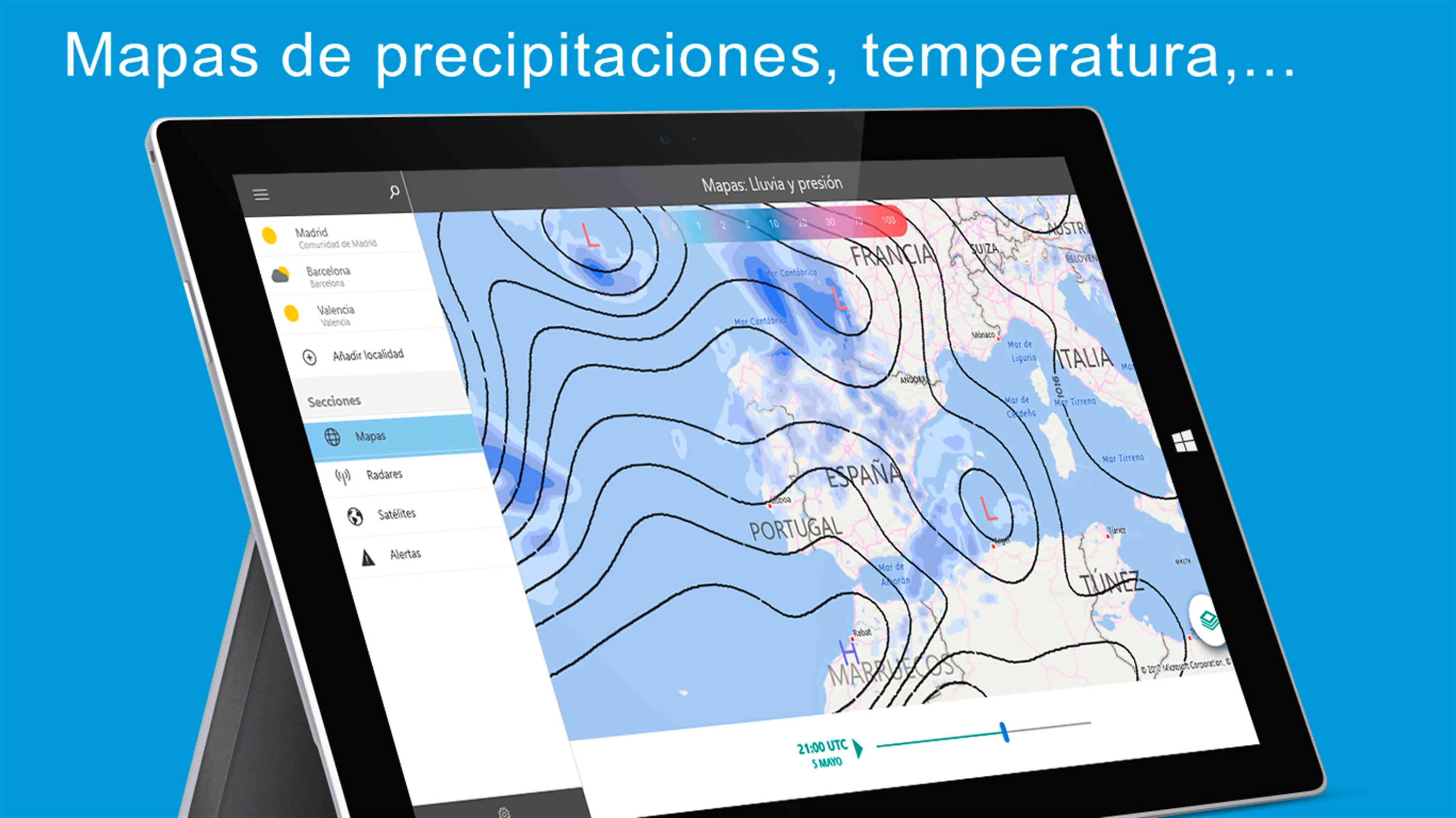 El tiempo de tu ciudad. Predicción por horas, mapas, radares, alertas y Live Tile.