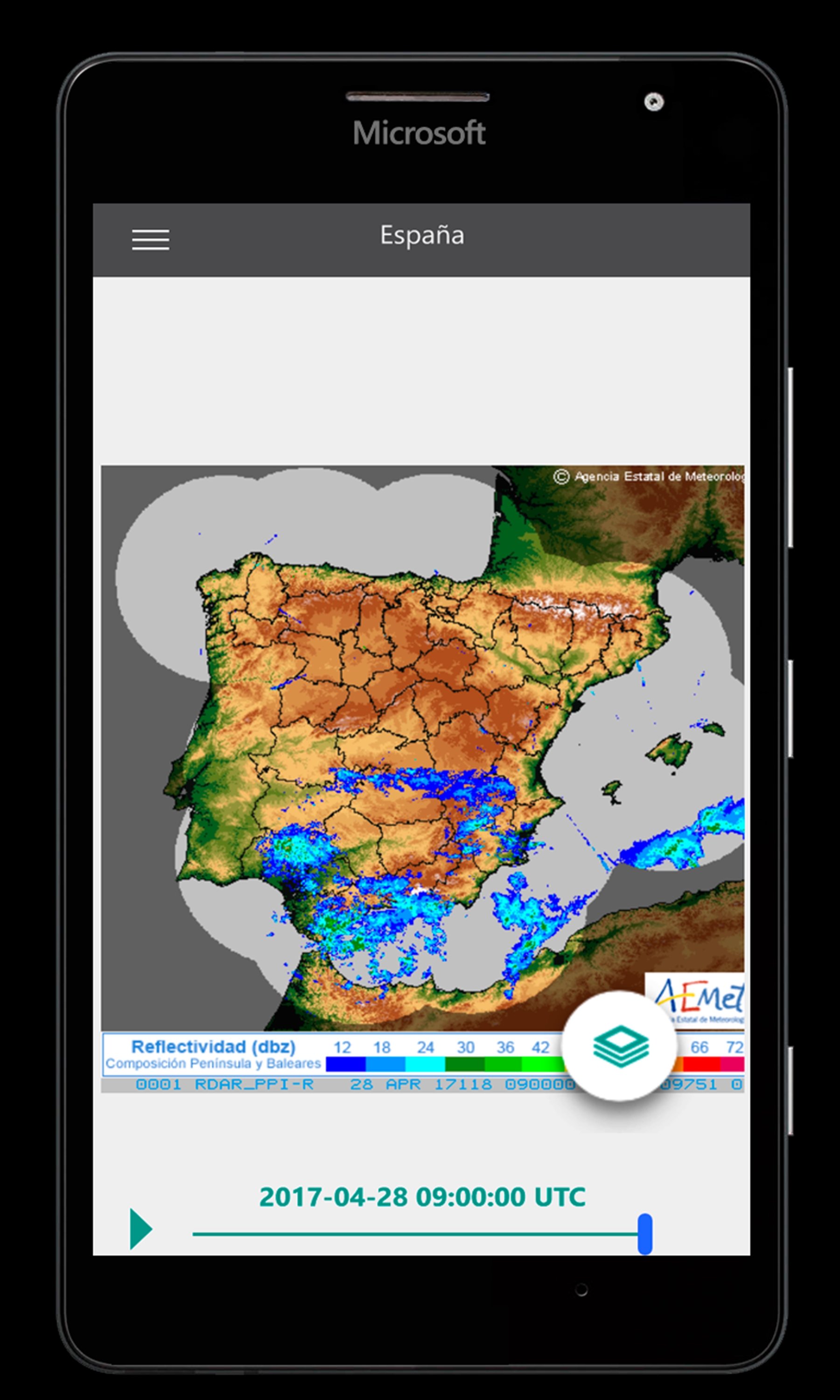 - Obtén la animación de las imágenes del radar de España de las últimas horas proporcionadas por AEMET.