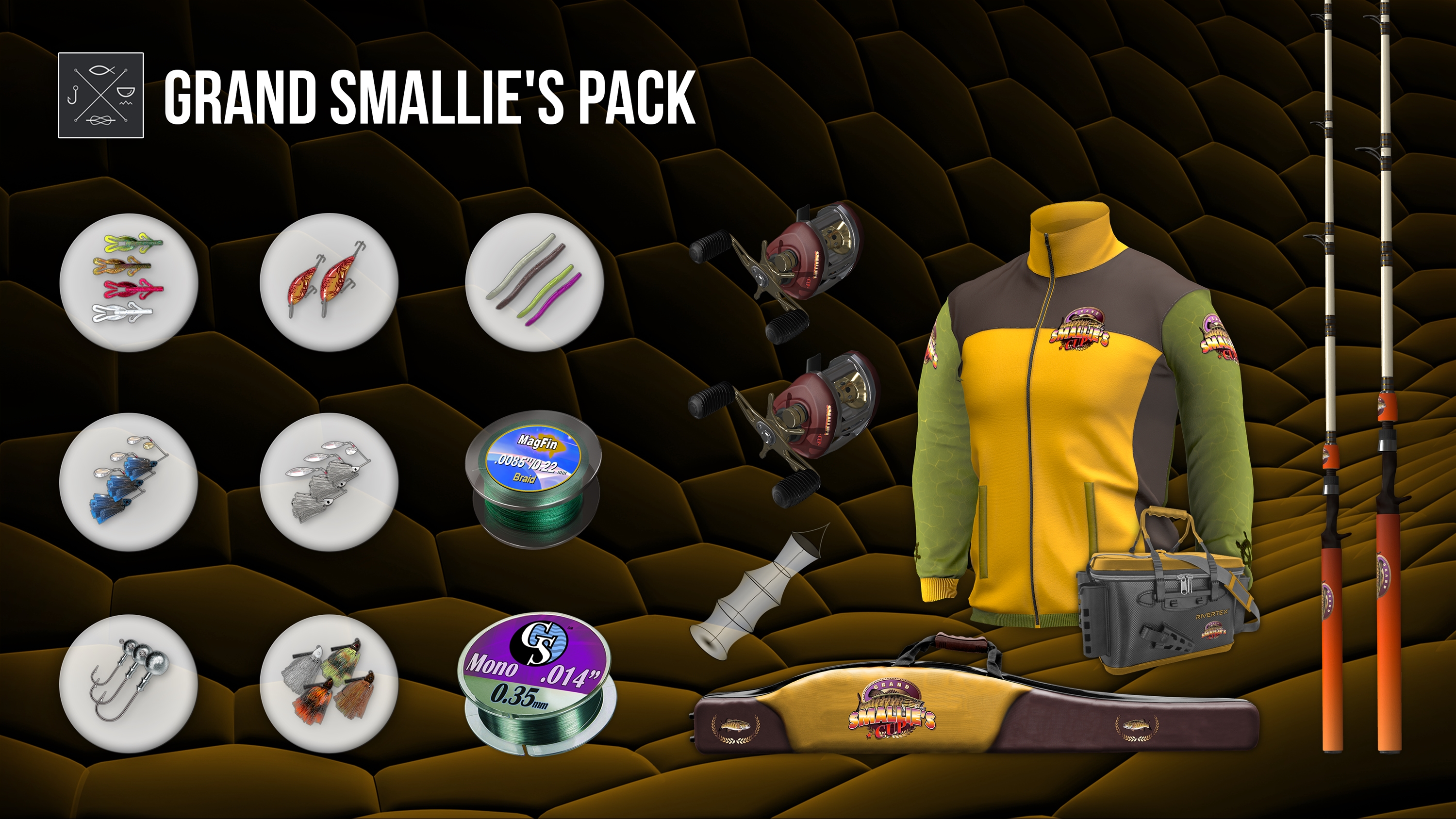 Grand Smallie's Pack is a limited edition exclusive DLC created with the subtle art of Smallmouth Bass fishing in mind, to give you all top notch combat-mode tackle that’ll help you achieve a Champion performance!