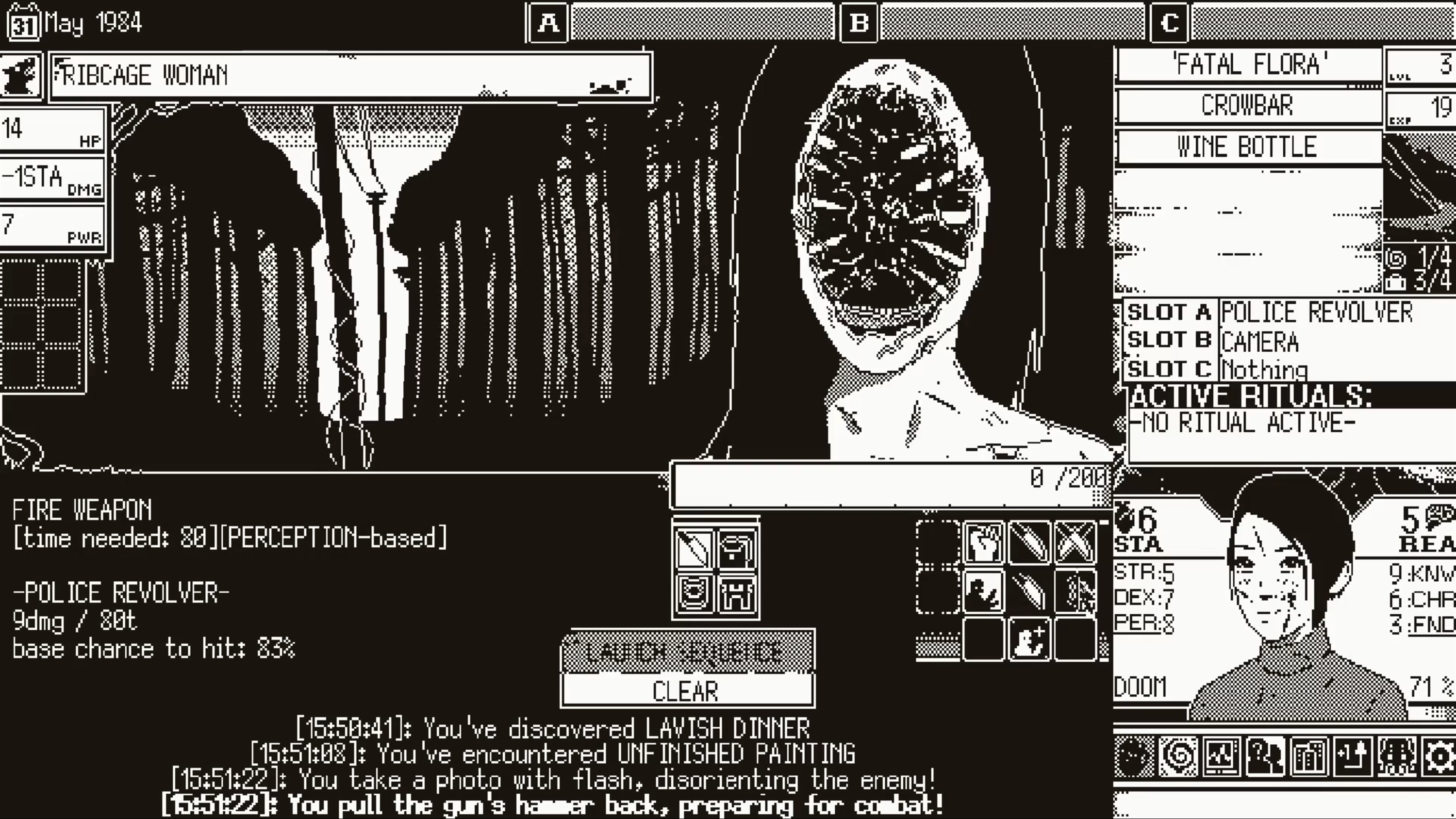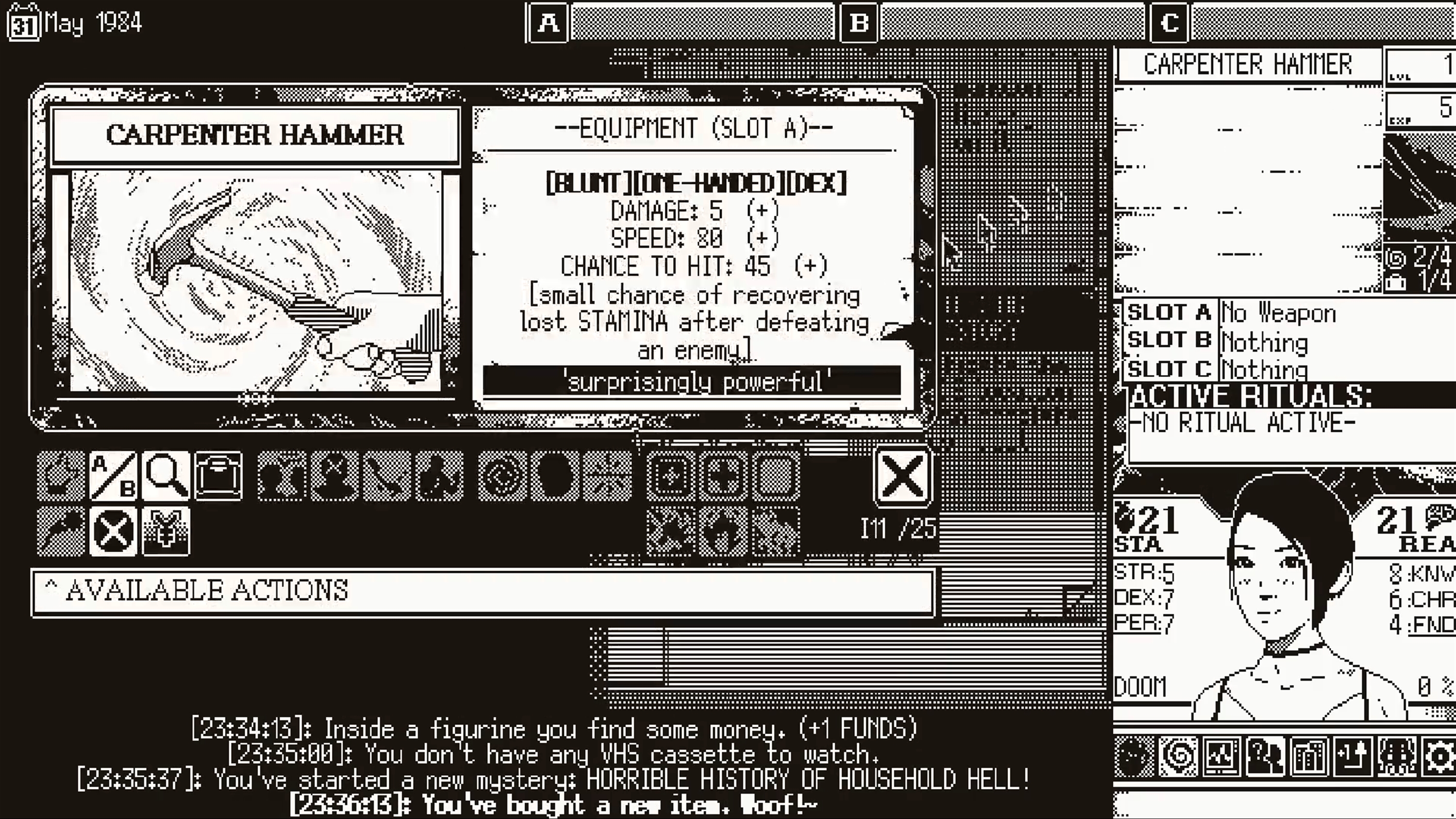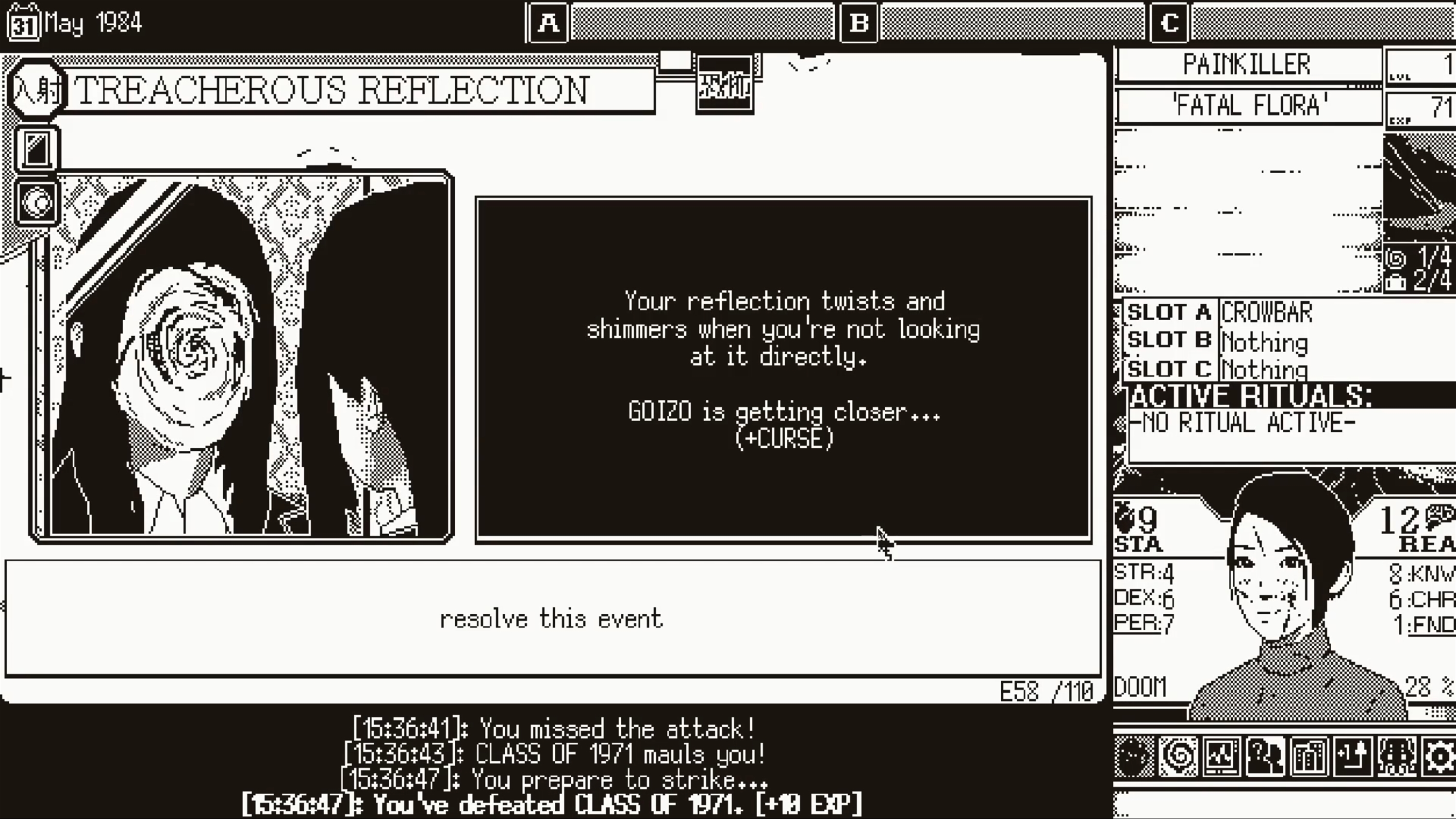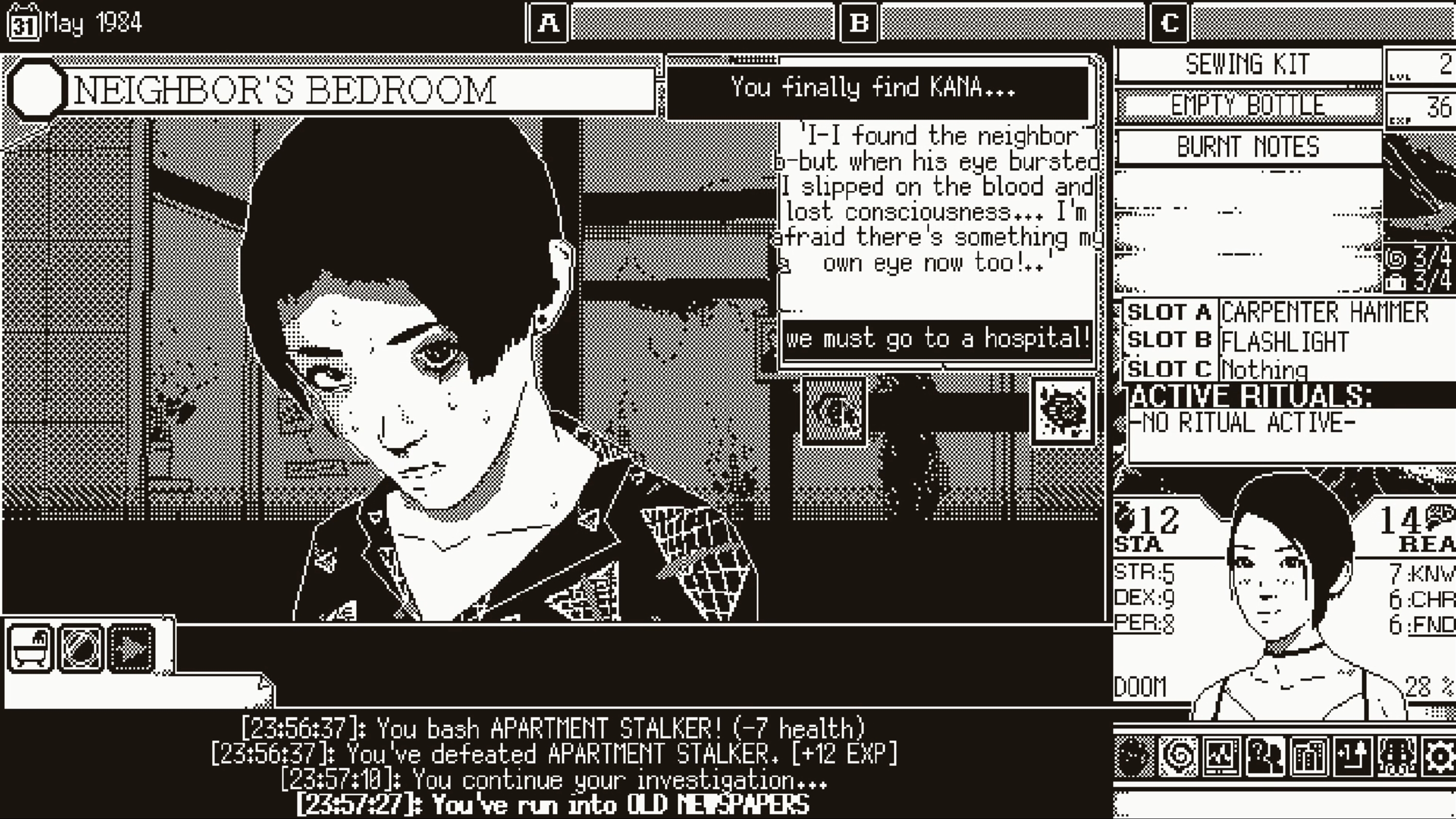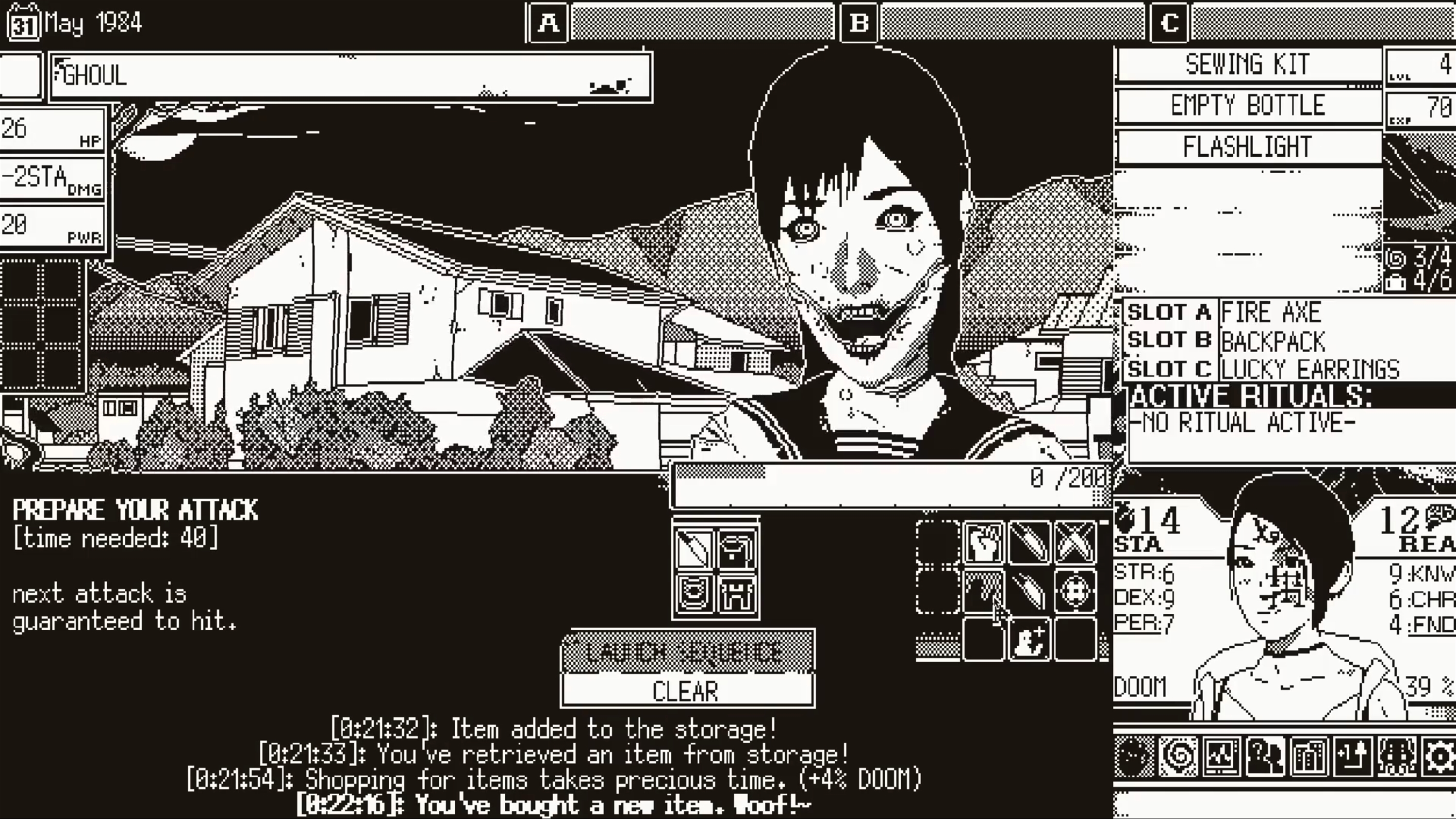 WORLD OF HORROR features branching stories with five playable characters to brave the chaos, each with their own story and a different perspective on the events that unfold. Unravel puzzles and mysteries through spells that sacrifice sanity. Uncover disturbing and shocking clues. Diligently search every nook and cranny, scouring for helpful items that may come in handy in another twisted encounter.