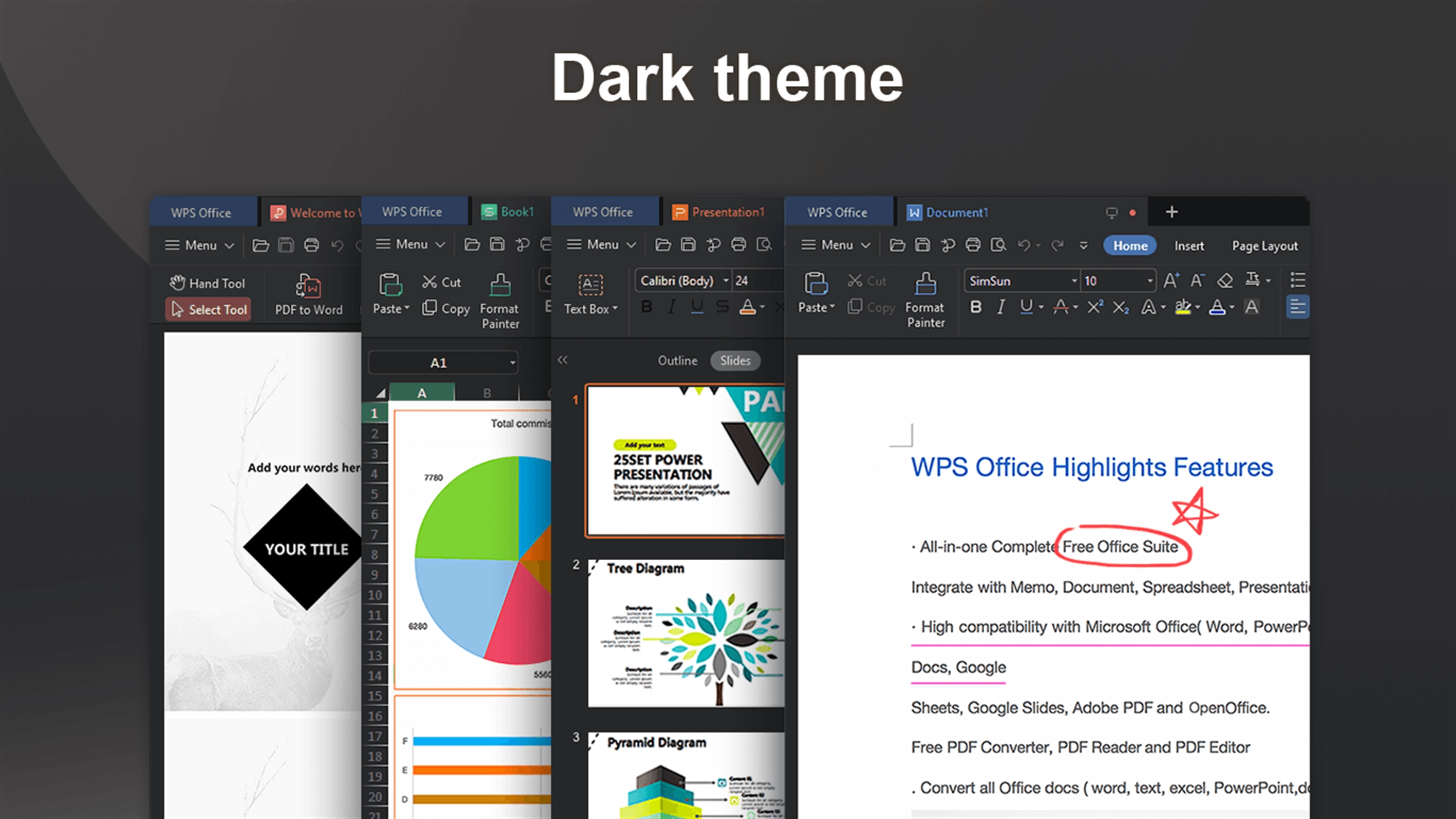 Compatible with Microsoft Office 365 (Word, Excel, PowerPoint, and TXT), WPS Office supports popular file formats such as XLS, XLSX, DOC, DOCX, RTF, TXT, PPT, and PPTX. It is also compatible with Google Docs, Google Sheets, Google Slides, Adobe PDF, PDF Reader, Xodo PDF, OfficeSuite, OpenOffice, LibreOffice, and FreeOffice. In addition, WPS Office works perfectly with Google Classroom, Zoom, Slack, and Google Drive.