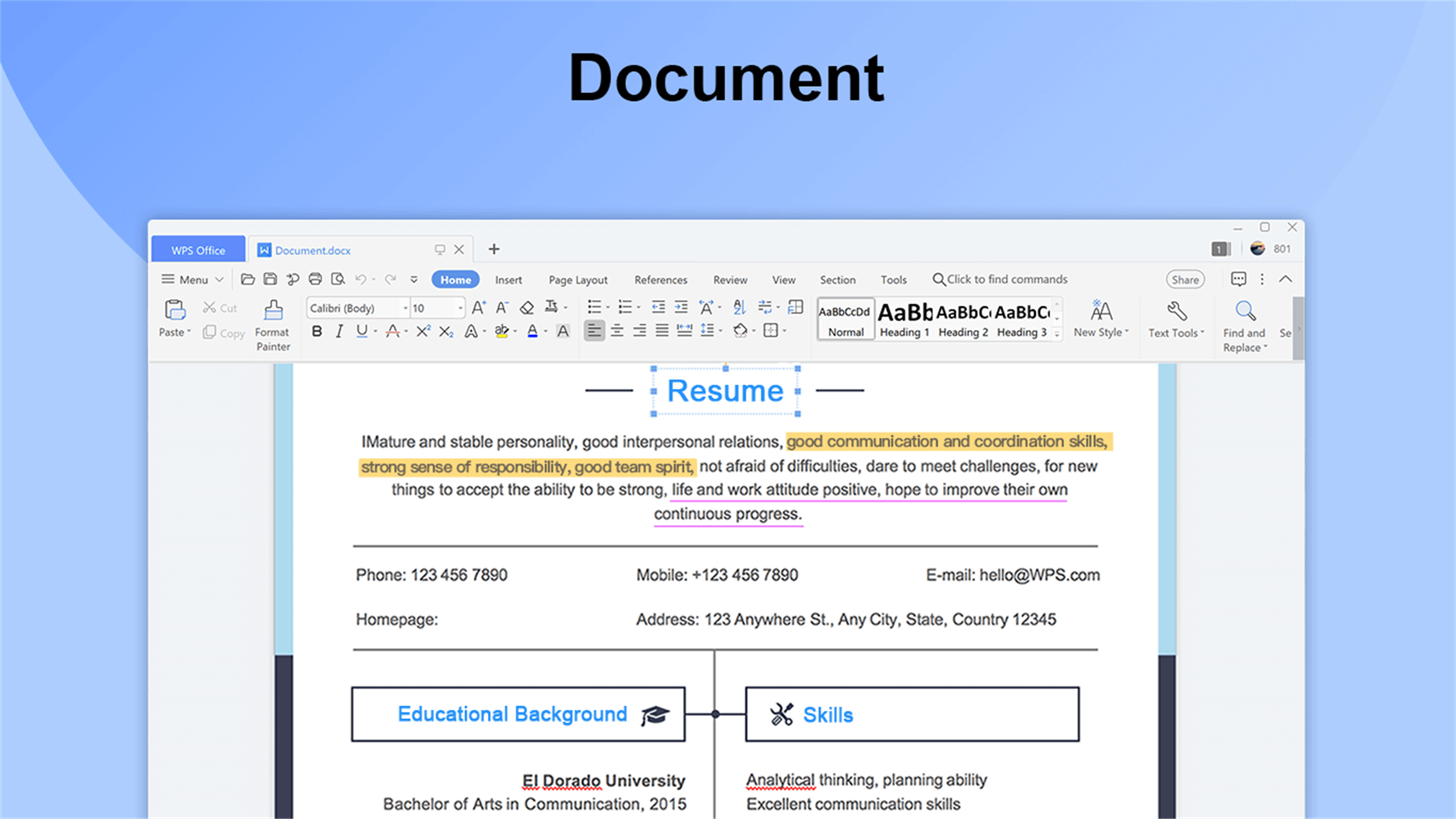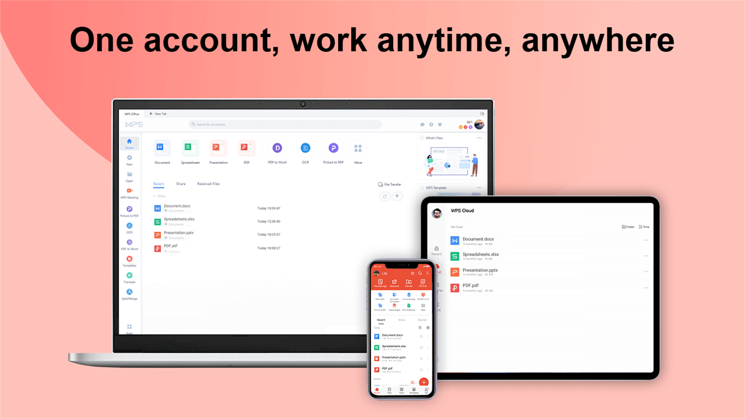 Access various WPS Office functions on multiple devices, you can transfer your documents easily to mobile devices. WPS Office allows you to edit scanned PDF files, edit slides, convert spreadsheets, or view documents anytime, anywhere.