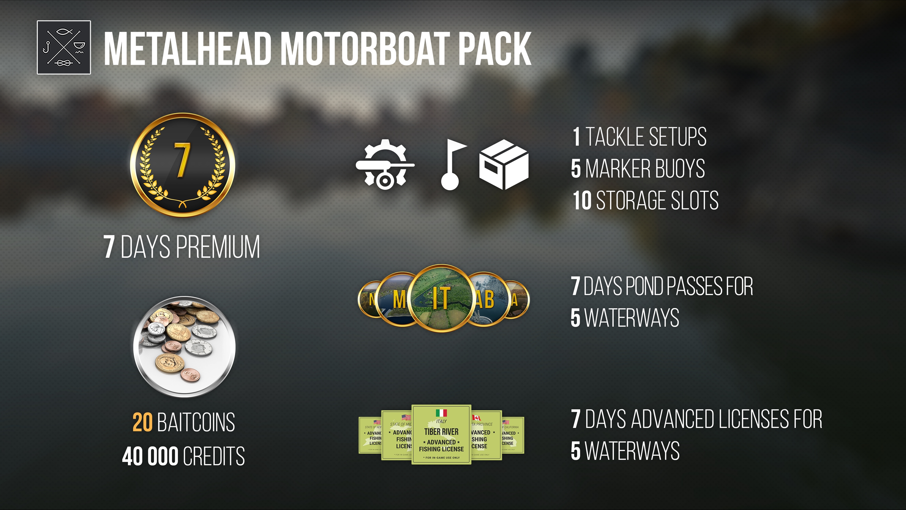Not to mention that with 7-Day Pond Passes and Advanced Licenses for five awesome fishing destinations, including the fantastic Saint-Croix Lake and gorgeous Tiber River in Italy, the Metalhead Motorboat Pack will take your angling explorations to a much faster level!
