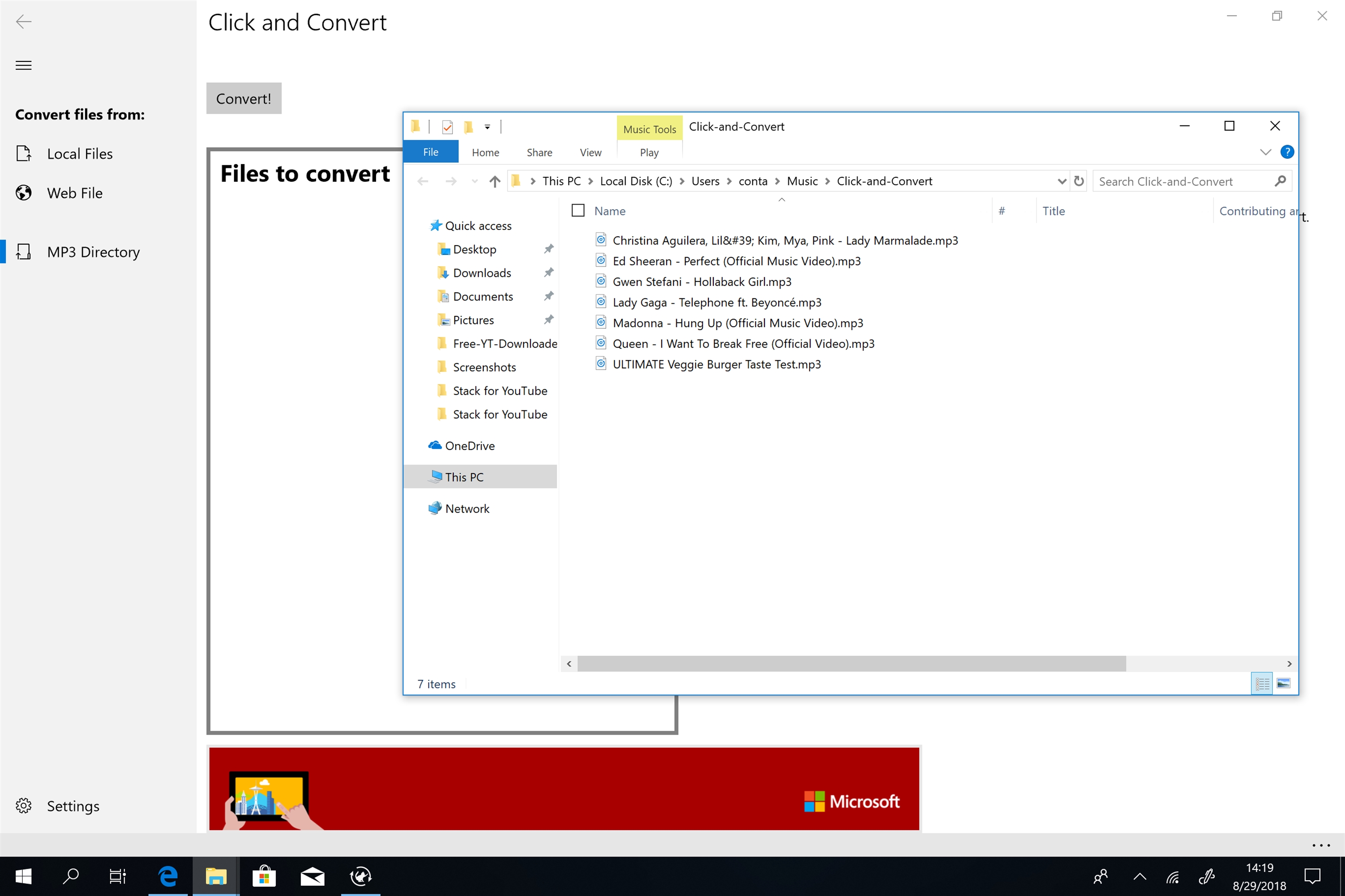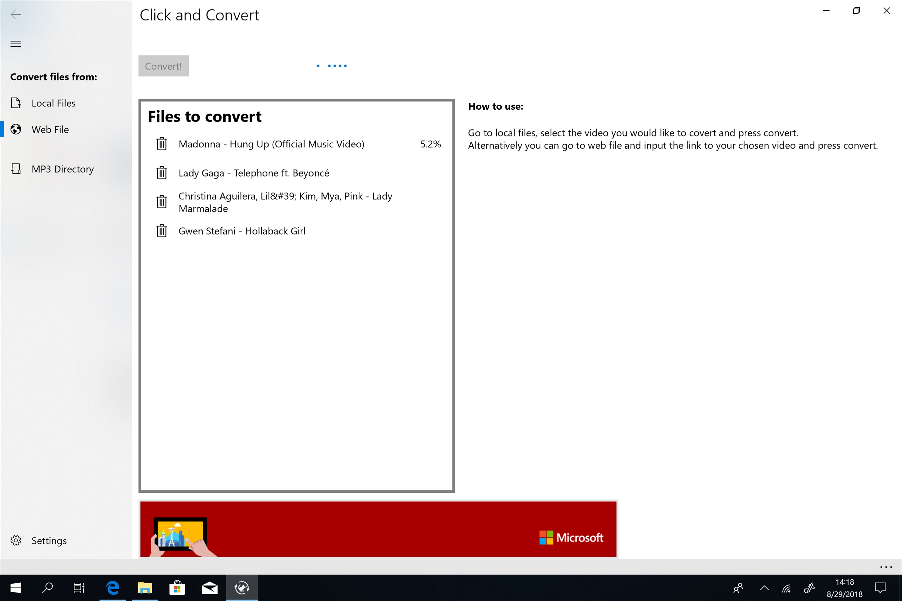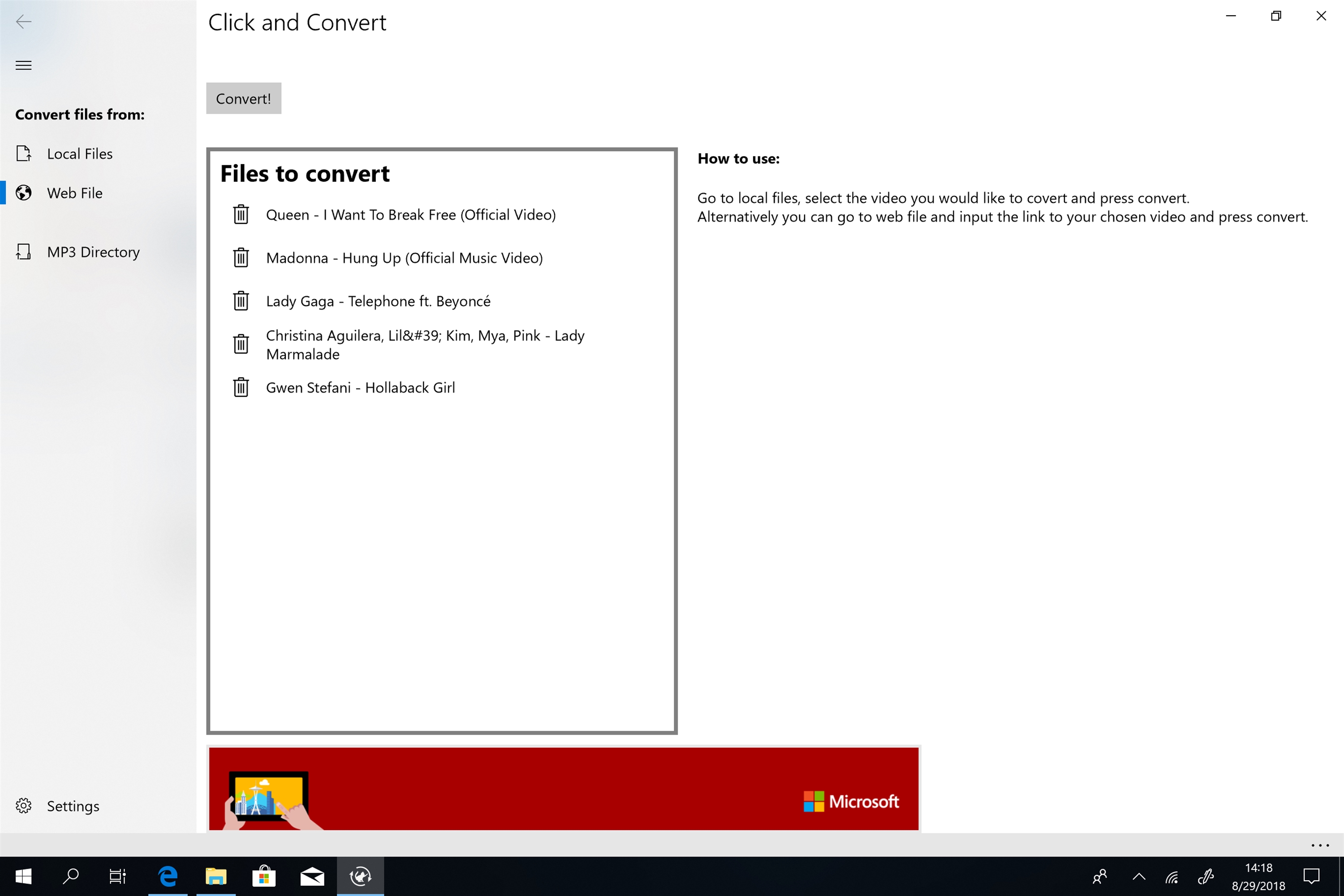 With Click and Convert you can easily convert videos and audio files to MP3 format, with the option to upload files from your computer or copy the link from an online video.